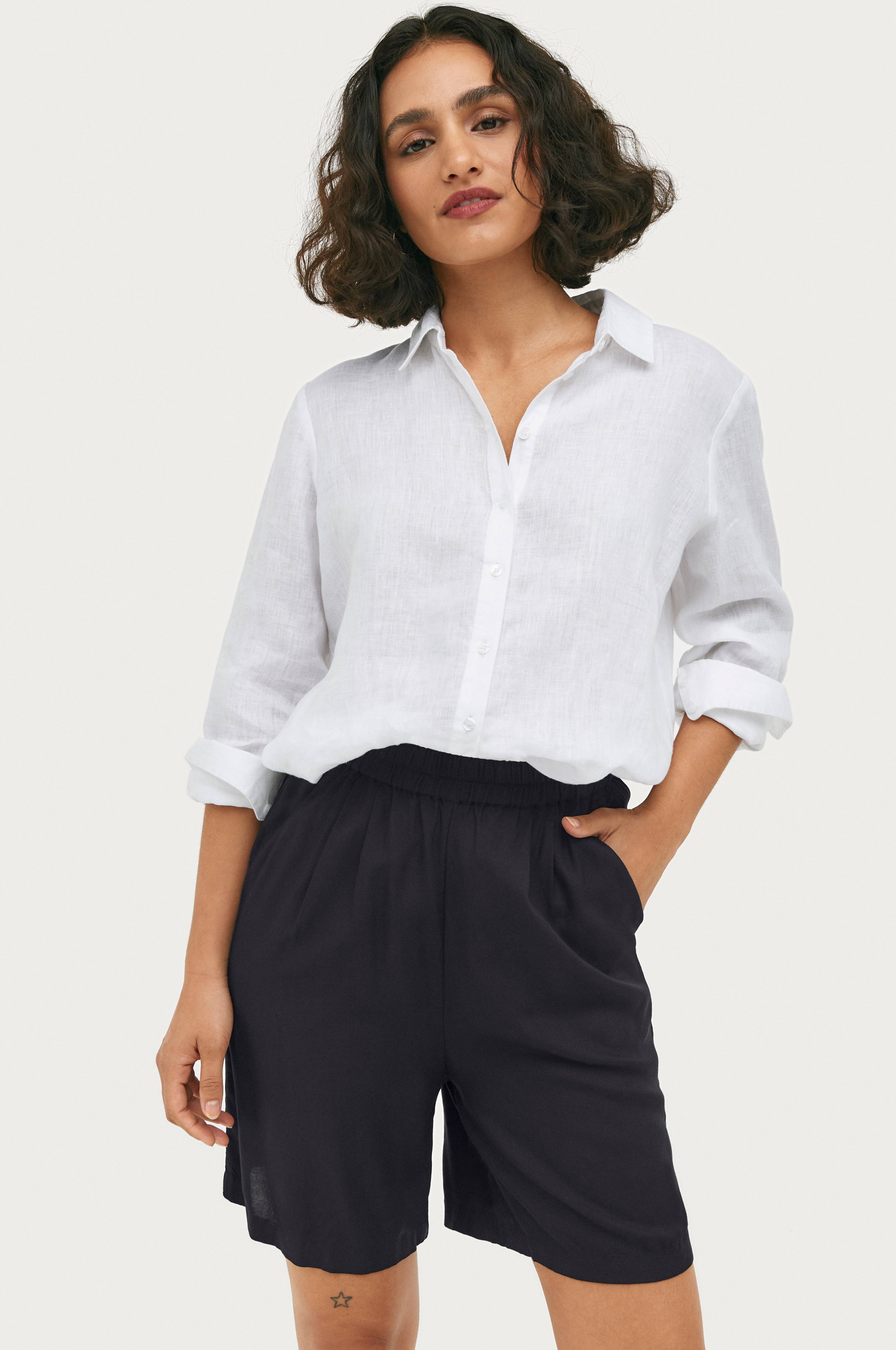 Vide shorts i vævet viskose. Elastisk talje og lommer i siderne.