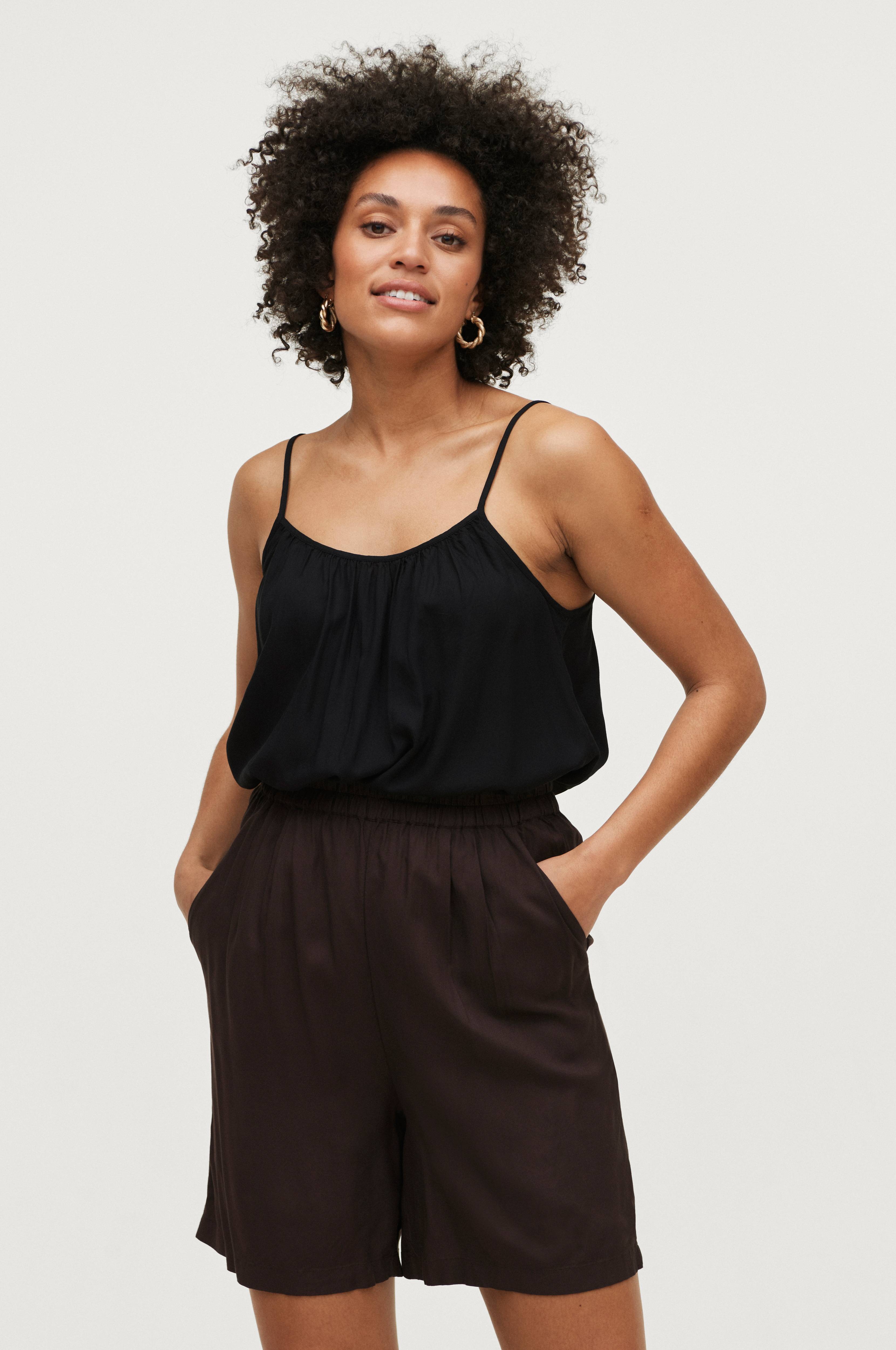 Vide shorts i vævet viskose. Elastisk talje og lommer i siderne.