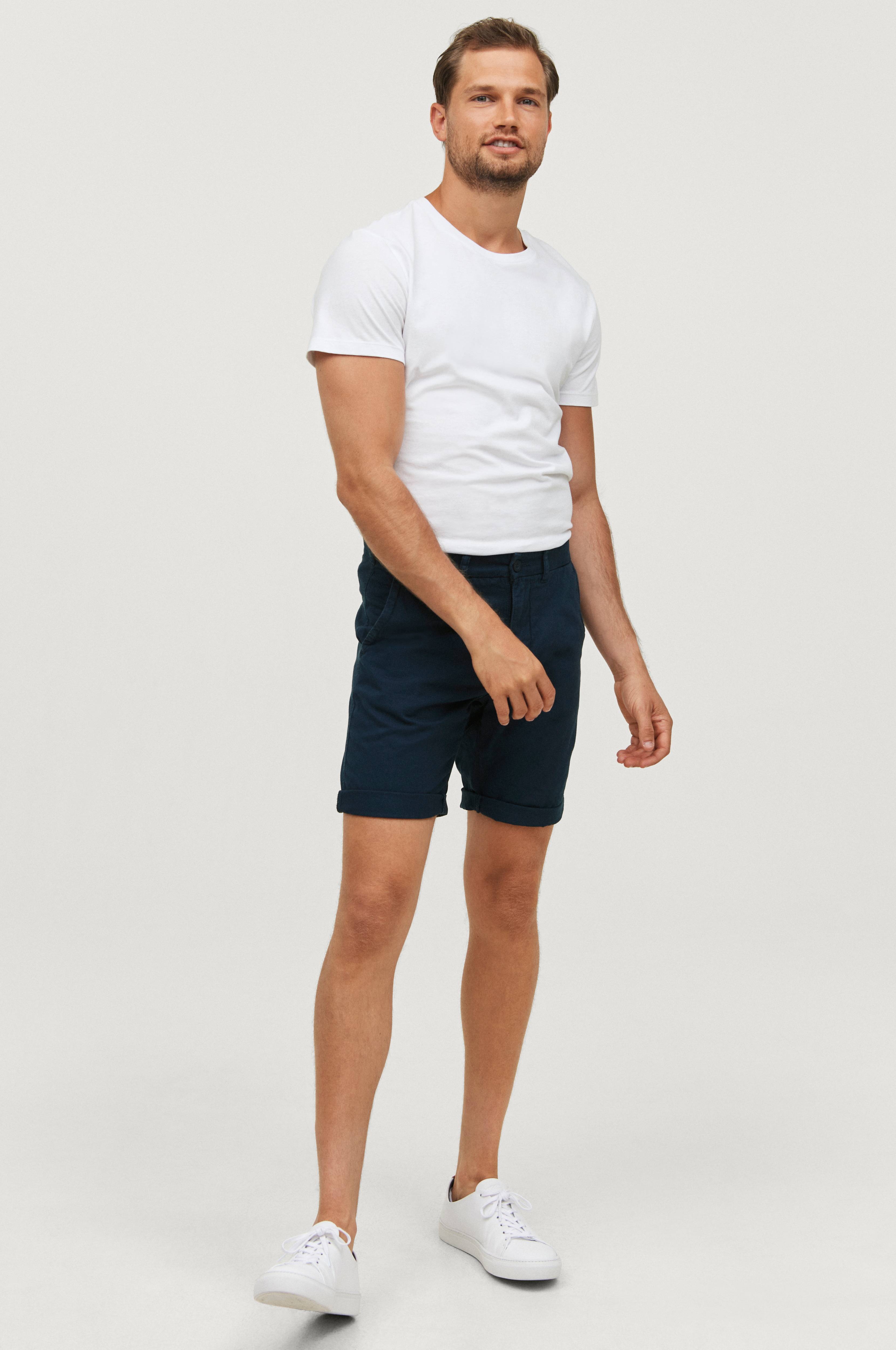 Shorts Morgan i chinosmodel med løs pasform og oprullet benkant som ikke er fastsyet. Lommer i siderne, lille møntlomme foran og to paspolerede lommer med knap bagpå. Gylp med lynlås og knap.