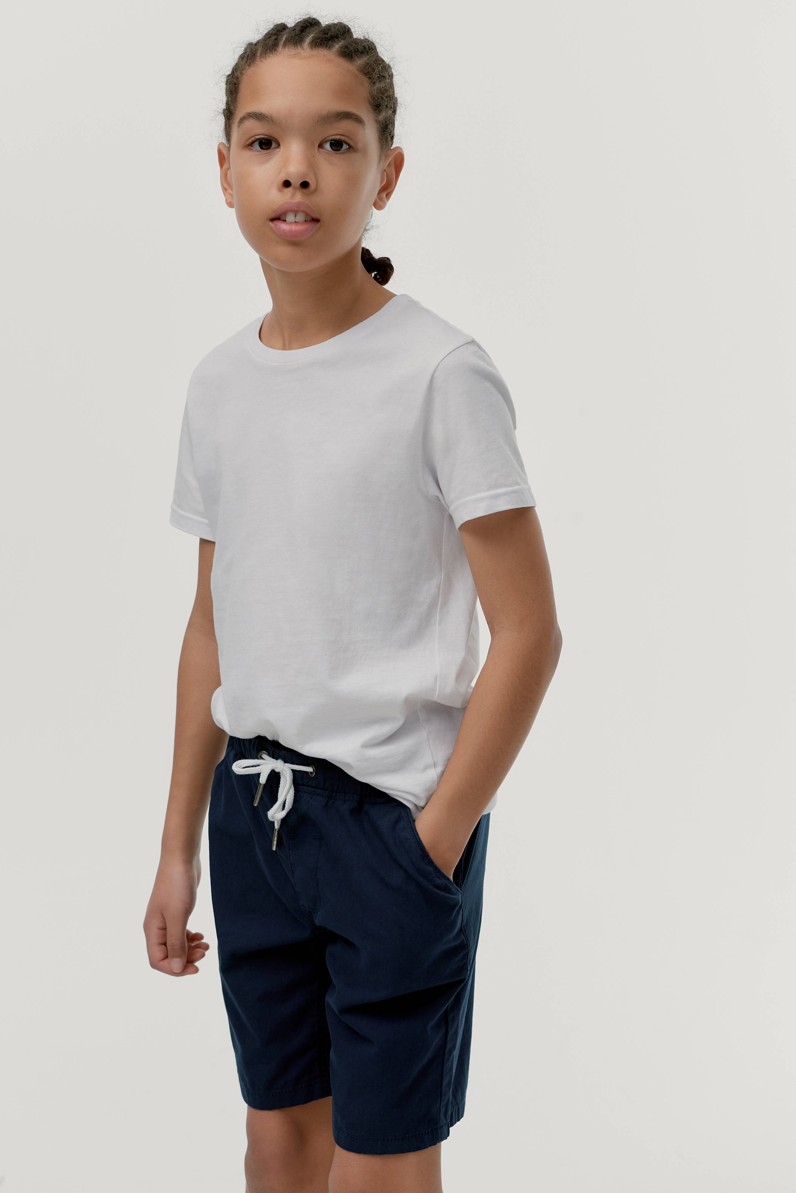 Shorts i vævet, blødvasket kvalitet af bomuld. Elastisk linning med løbegang. To lommer for og to lommer bag.
