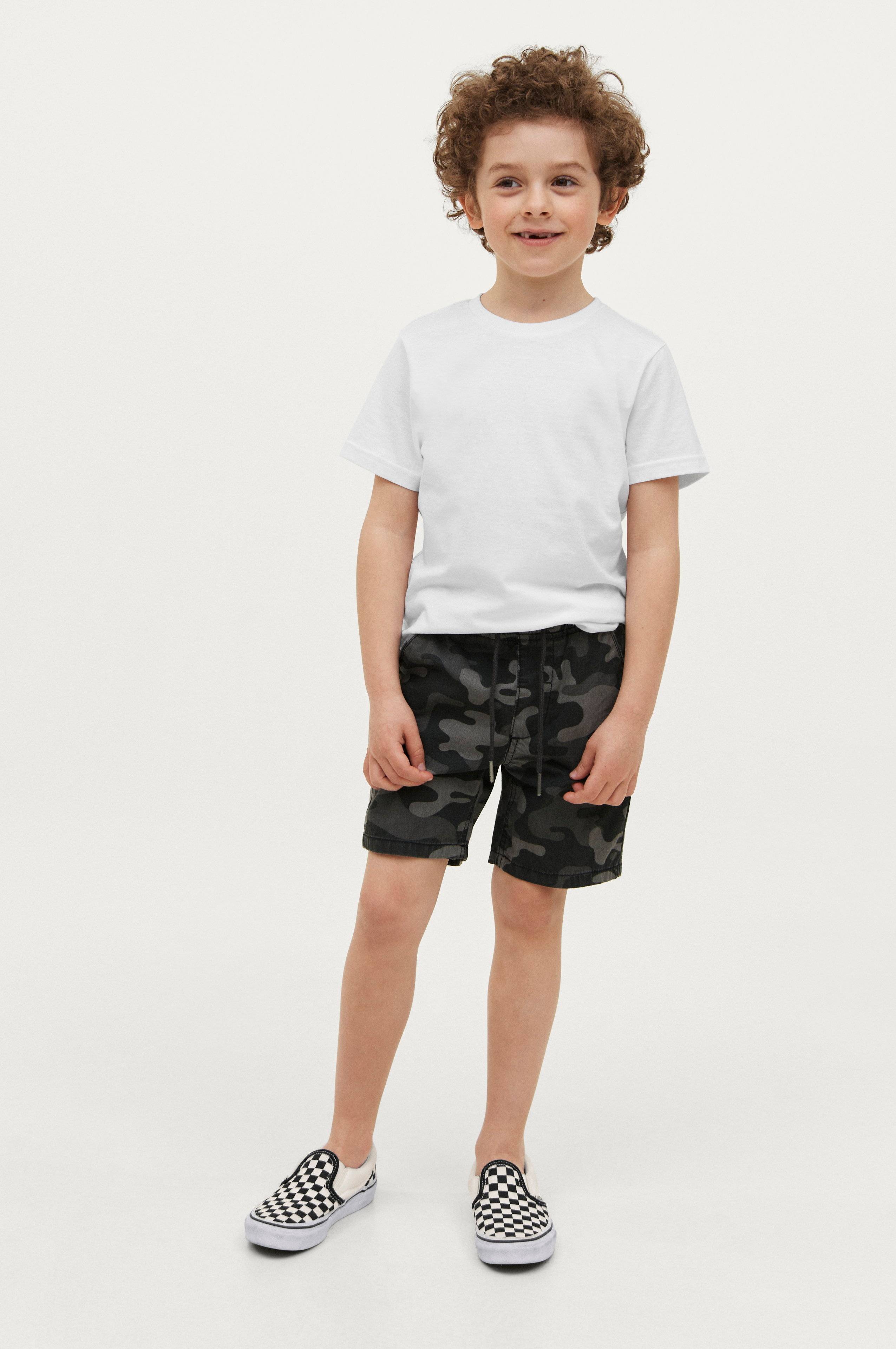 Shorts i vævet, blødvasket kvalitet af bomuld. Elastisk linning med løbegang. To lommer for og to lommer bag.