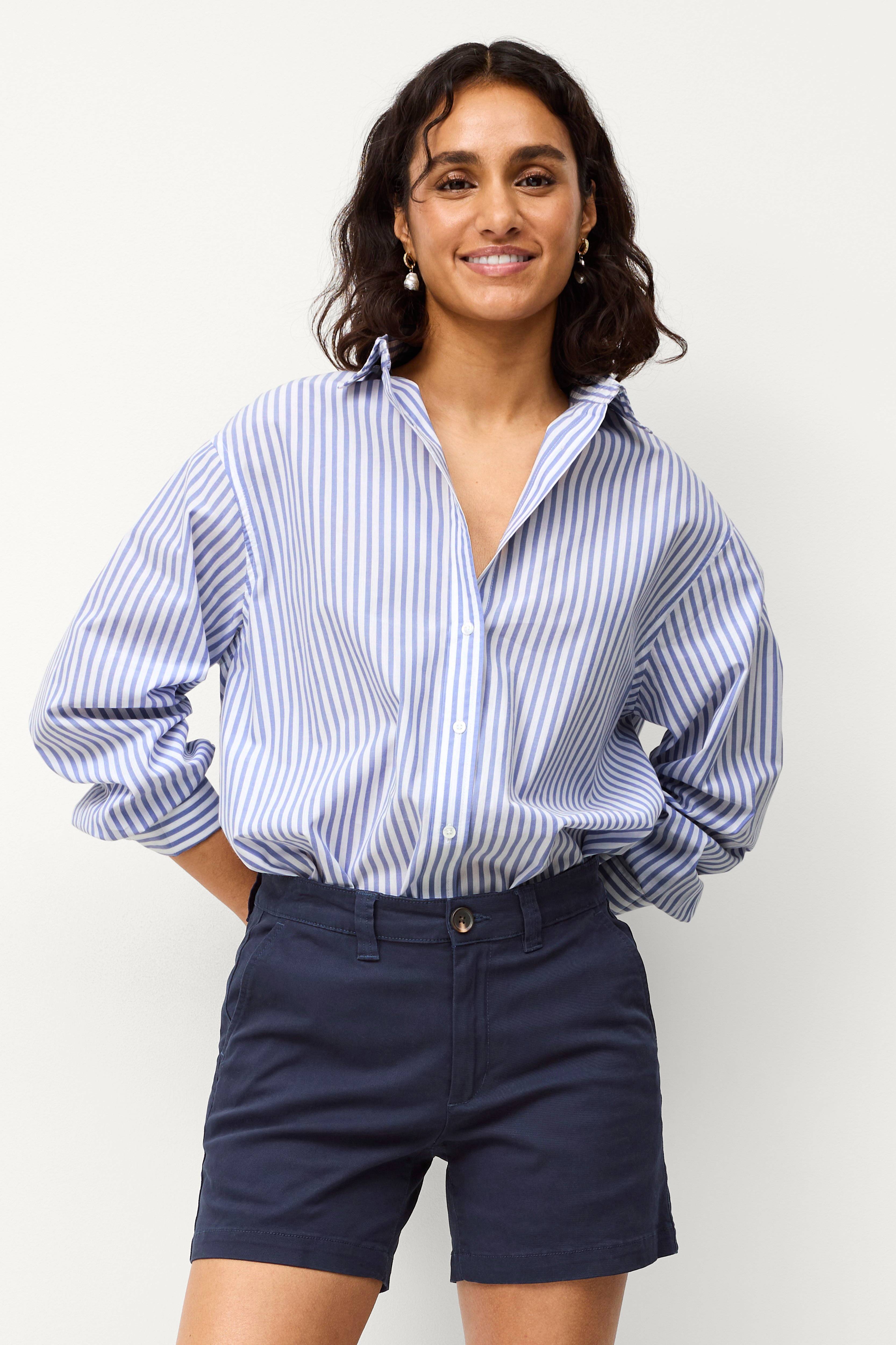 Meget komfortable og utroligt flotte shorts. Benene er passende lange/korte. Materialet er sammenligneligt med meget tyndt denim, hvilket gør, at de ikke er gennemsigtige, m…
