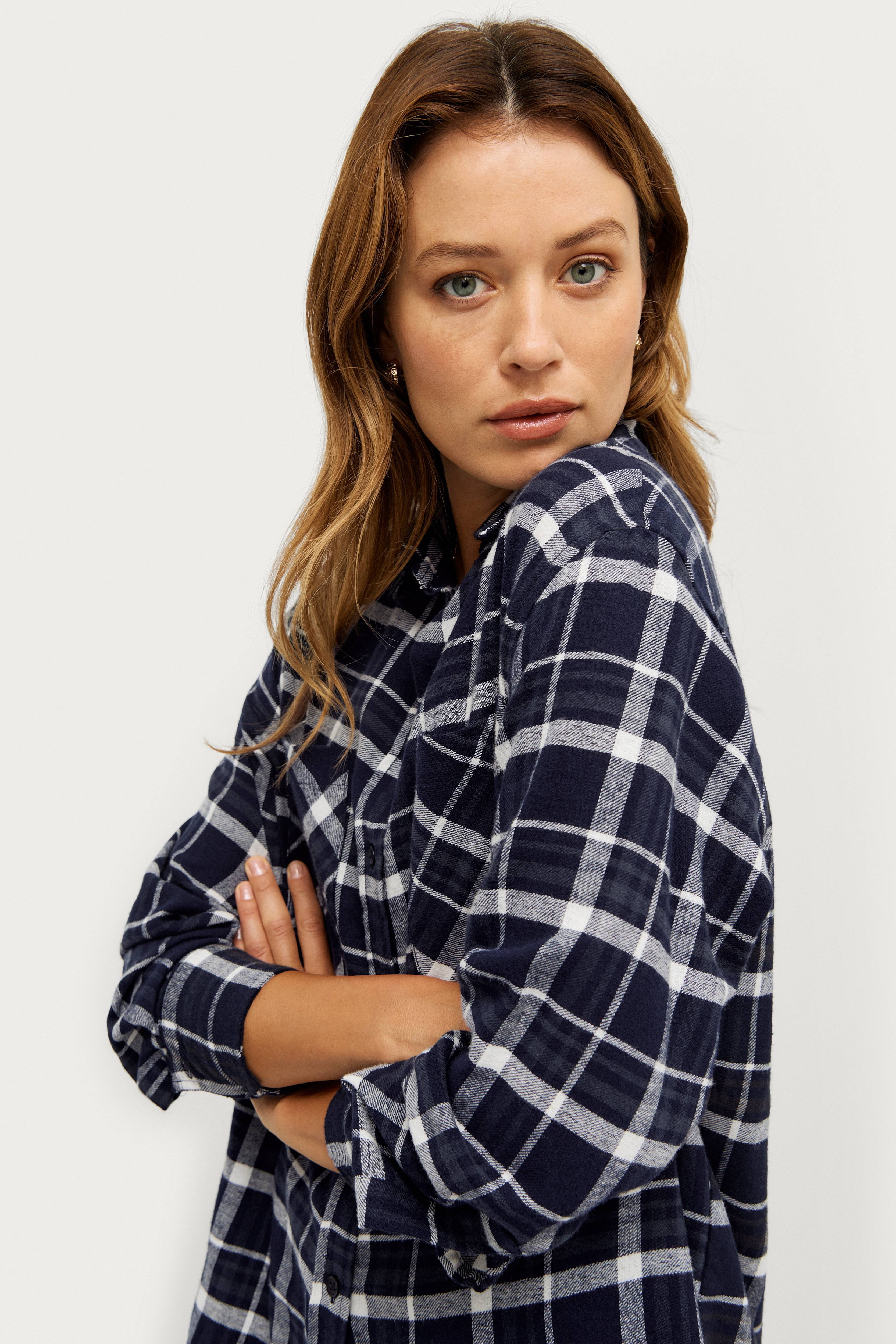 Tynd behagelig flanel, ikke tyk og klodset. Skjorten er rummelig og lidt længere end jeg troede, og ærmerne er gode nok længere, end de nogle gange kan være. Virkelig anbefale trøjen, je…