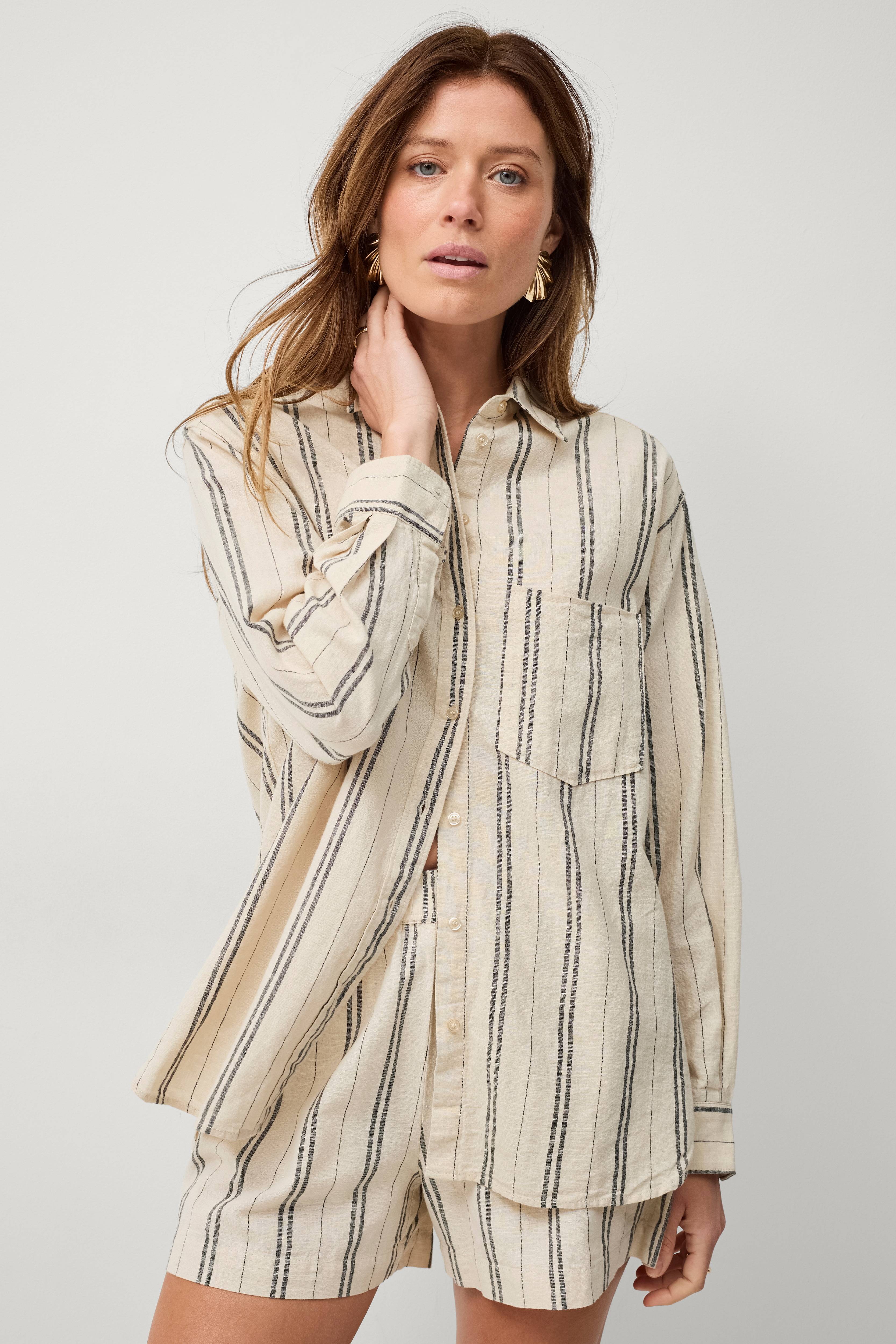 • Skjorte i hørblanding • Brystlomme • Manchet med to knapper • Boyfriendmodel • Fold bagpå • Længde: 79 cm i størrelse 34/36 • European Flax-certificeret hør, hvilket betyder, at produktet indeholder hør i høj kvalitet, dyrket under hensyntagen til miljøet og med sporbarheden i hele produktionsprocessen fra plante til fiber.