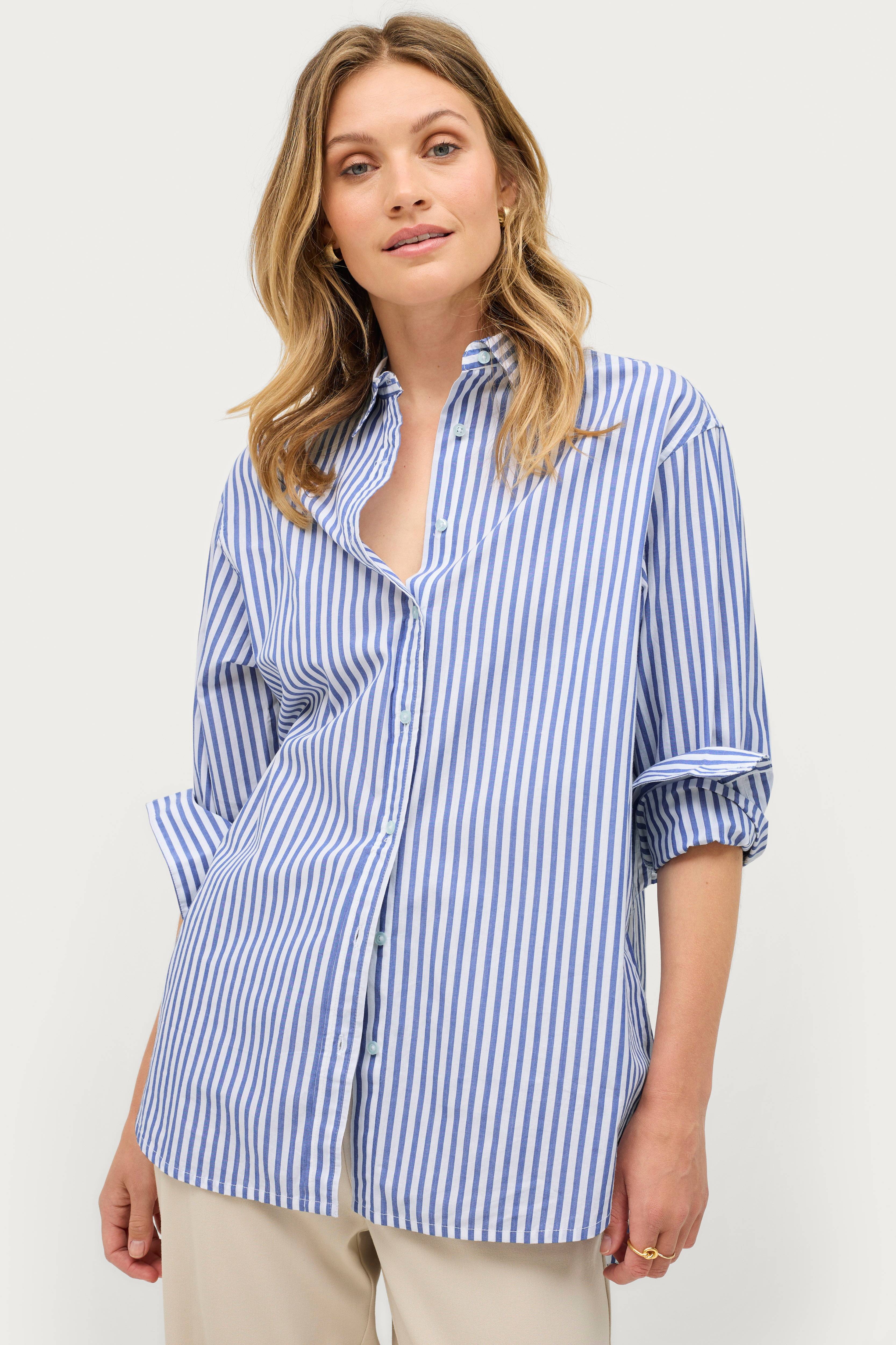 • Store størrelser• Lige, lang oversize model• Lille krave• Bokslæg oppe bagved• Langt ærme med manchet• Afrundet søm• Skjorte i sprød bomuldspoplin• Længde: 82 cm i størrelse 34/36