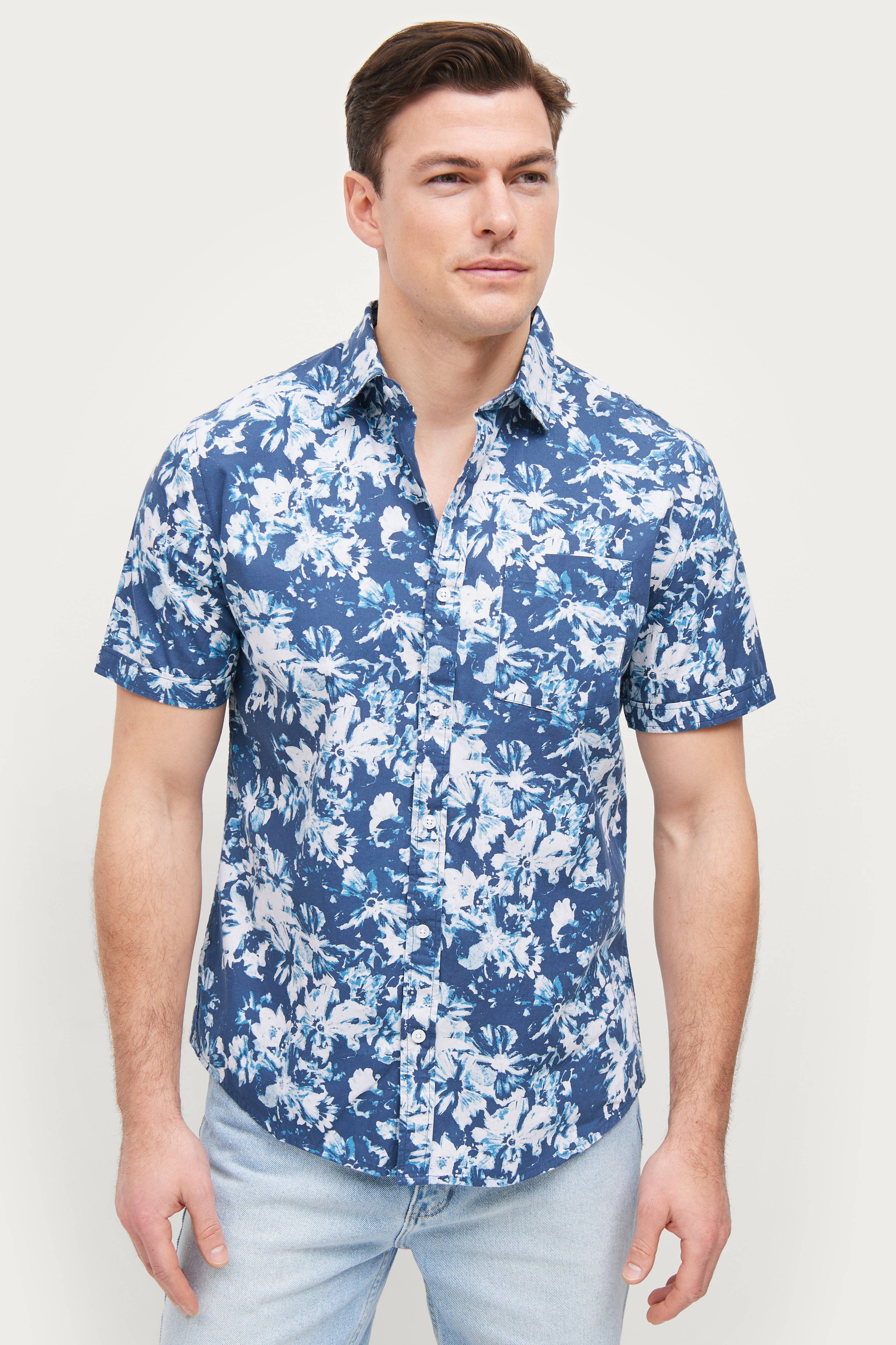 Kortærmet skjorte i bomuld med printet mønster. En brystlomme.