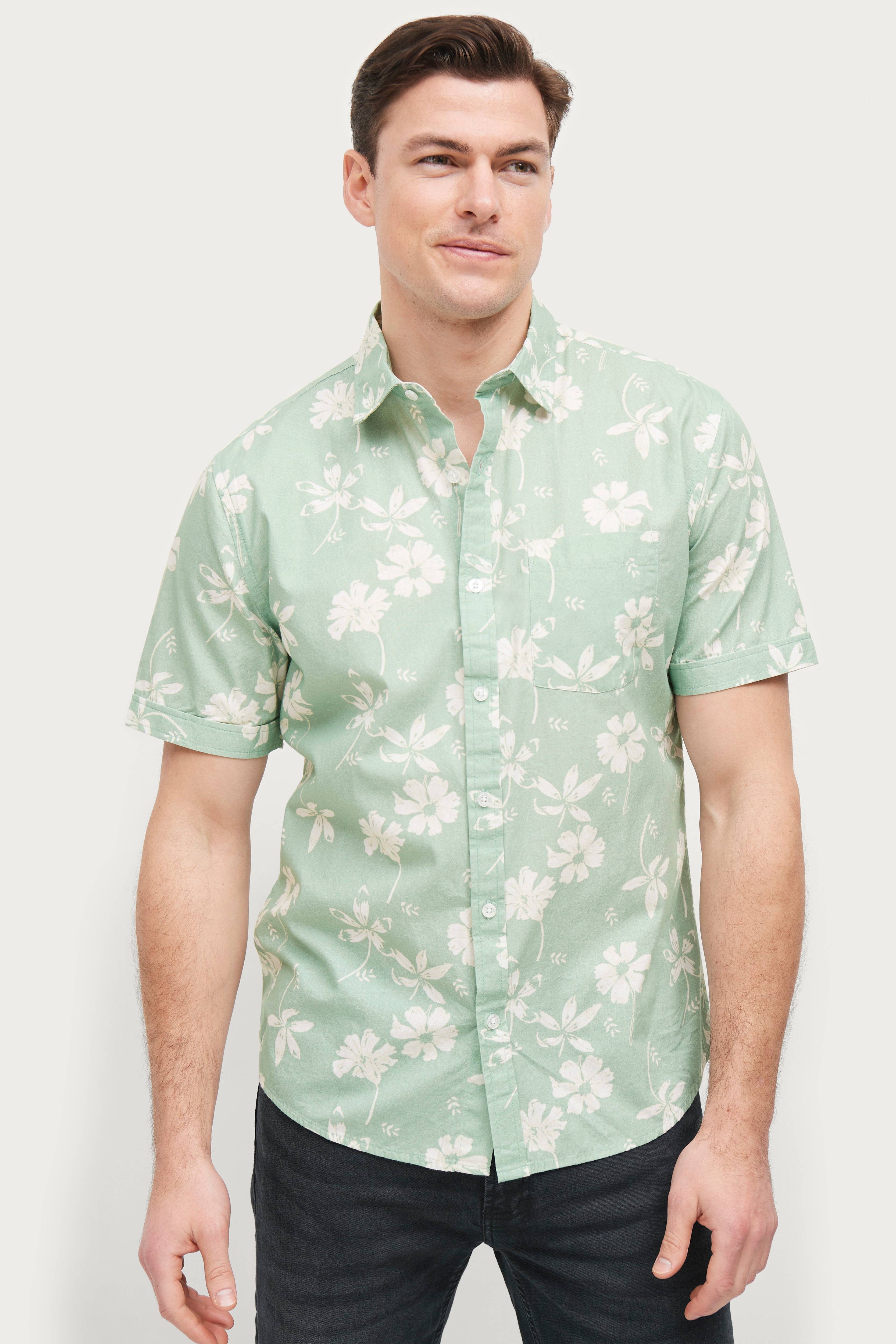Kortærmet skjorte i bomuld med printet mønster. En brystlomme.