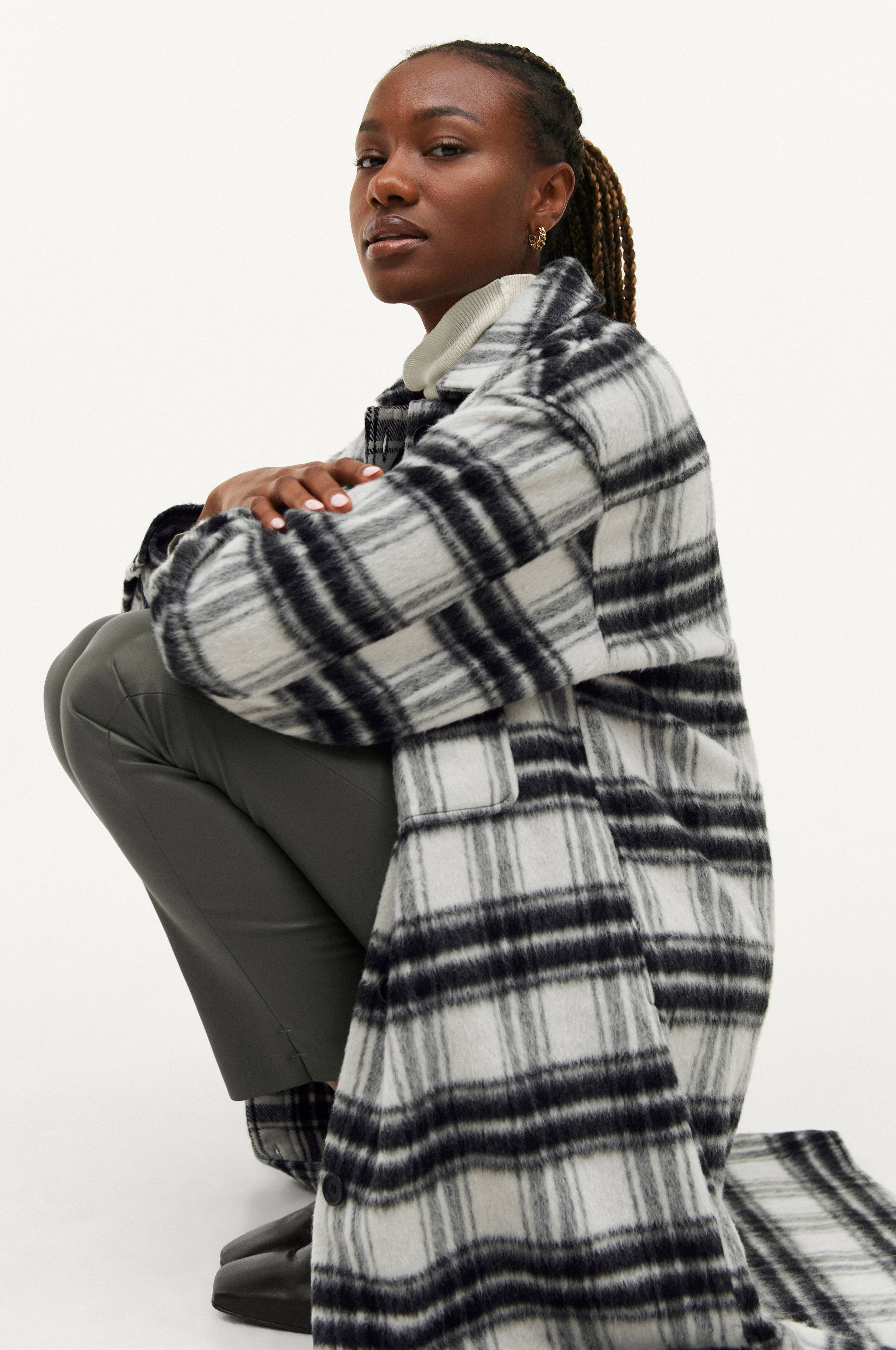 Skjortejakke i oversizemodel med blød, ulden overflade. Lukkes med knapper. To sidelommer og to brystlommer med klap. Knap i ærmekant og slids forneden i siderne. Længde ca. 109 cm i str. 34/36.