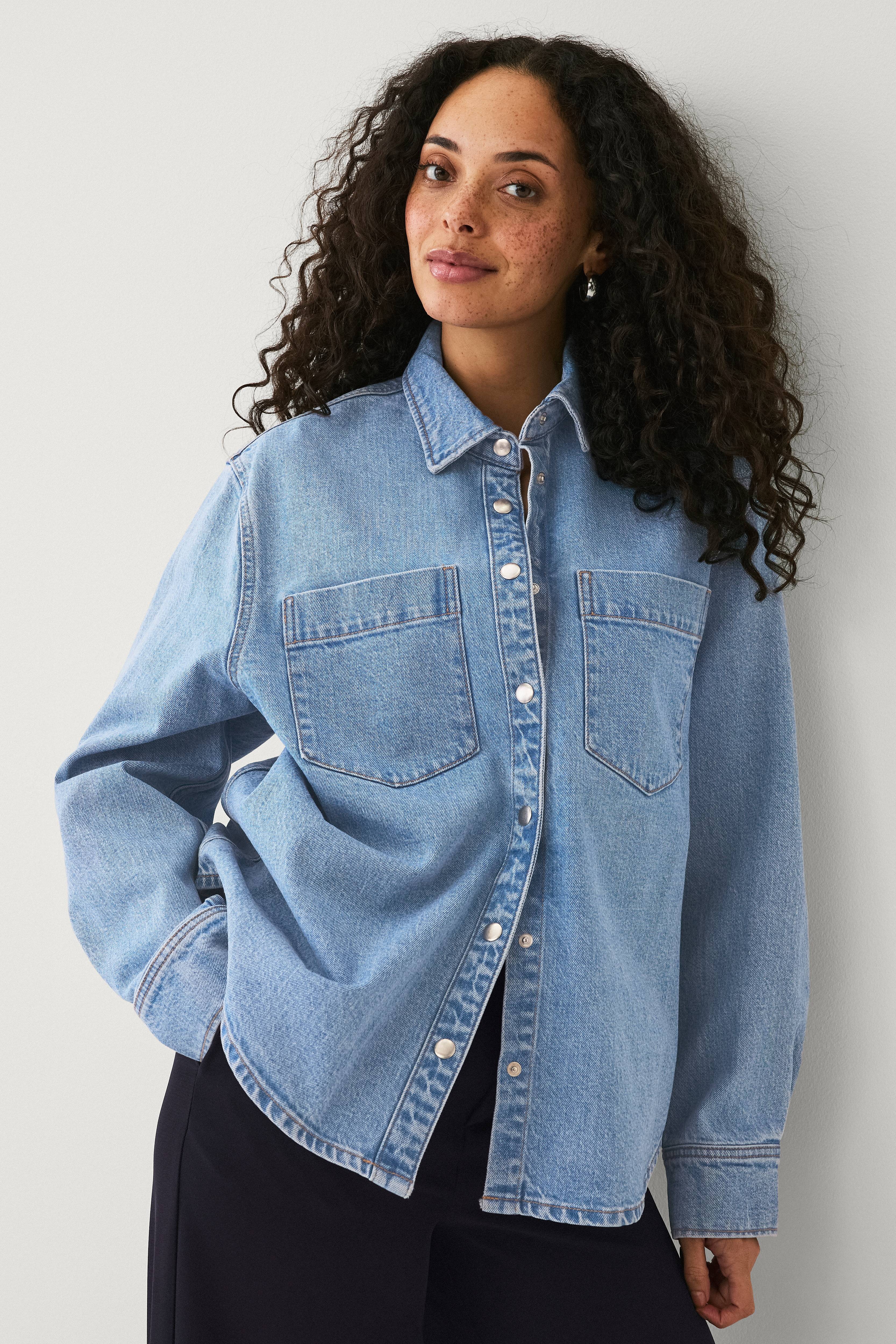 Frisk denimskjorte i kraftigt stof. Flot pasform. Lidt større i størrelsen. Passer både som skjorte og overskjorte.