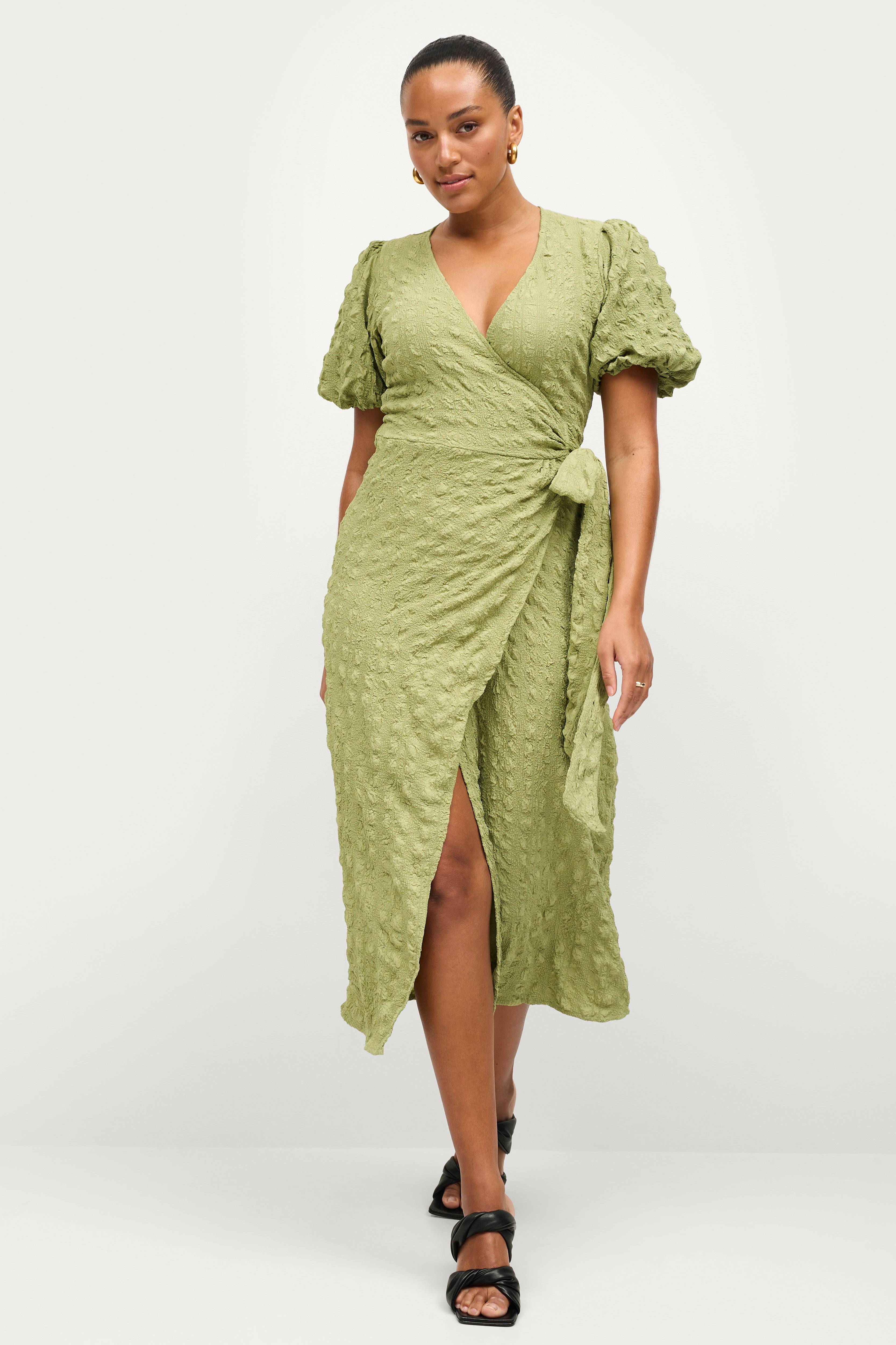 • Kjole med slå-om design • Snøring i siden • Korte ballonærmer • Kvalitet med struktur • Længde: 126 cm i størrelse 34/36 • Produktet er GRS-certificeret, hvilket betyder, at det indeholder sporbart genindvundet materiale og opfylder GRS' miljømæssige og sociale krav til ansvarsfuld produktion gennem hele fremstillingsprocessen. Samtidigt får gamle ressourcer nyt liv i stedet for at der forbruges nye. Licensnummer og testinstitut: 0011984 Etko