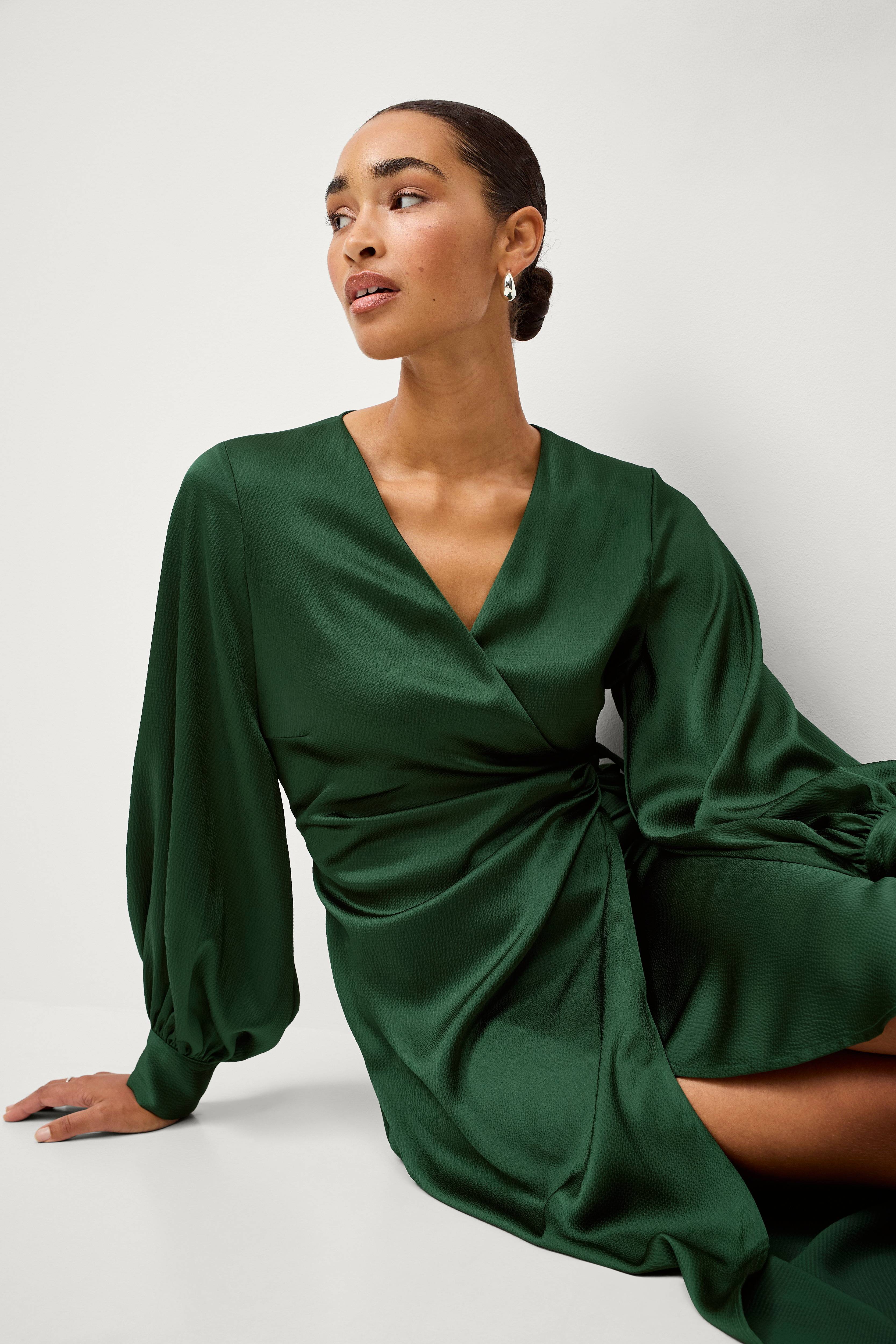 Meget smuk kjole, der falder flot, da stoffet er lidt tungere. Virkelig flot farve og er som på billedet. God i størrelsen.