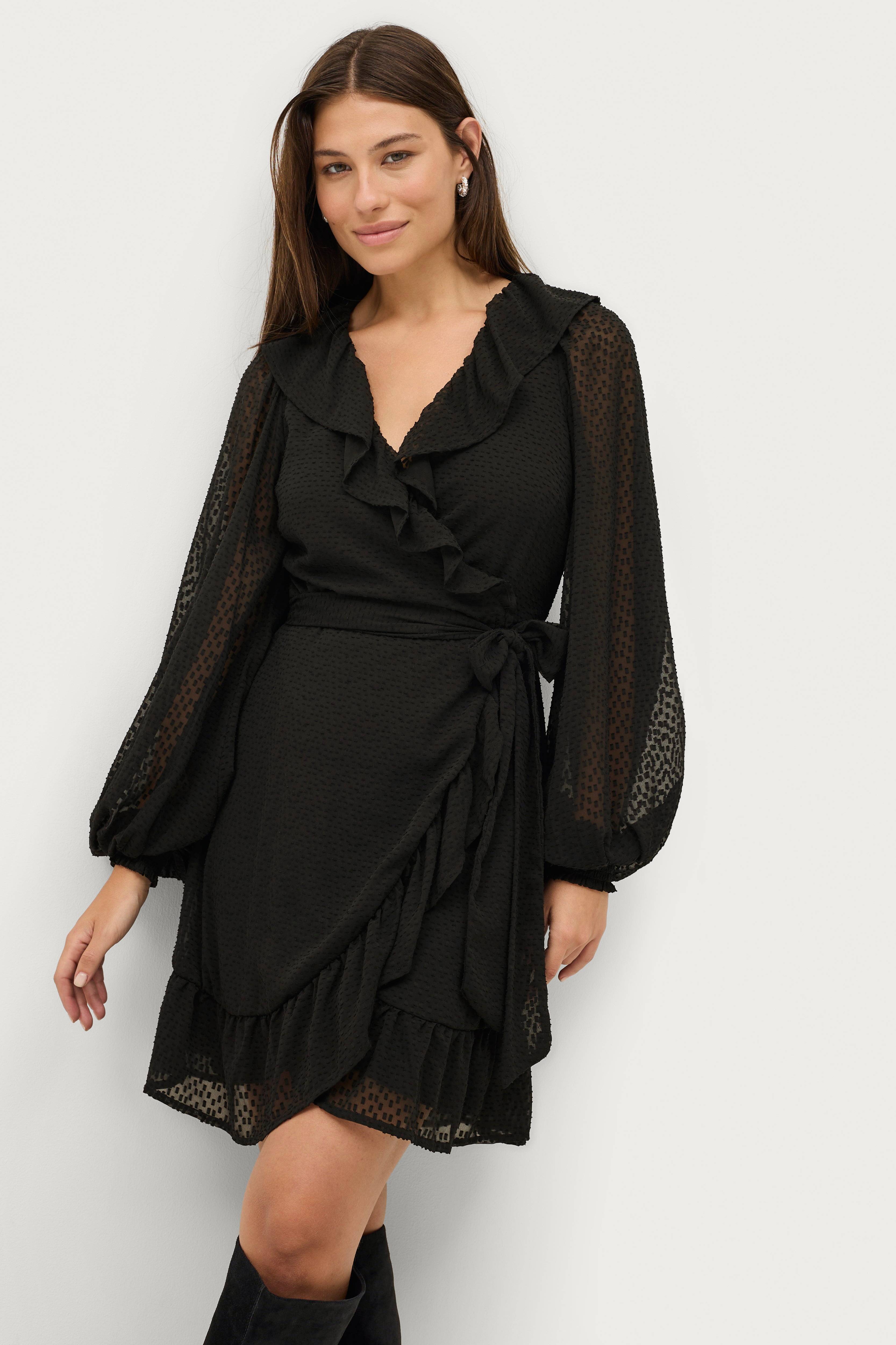 Meget flot kjole. Sidder godt, men da jeg er lidt stor, er den åben over mit bryst. Har en hvid top nedenunder.. Når jeg slanker mig, vil det sidde perfekt.