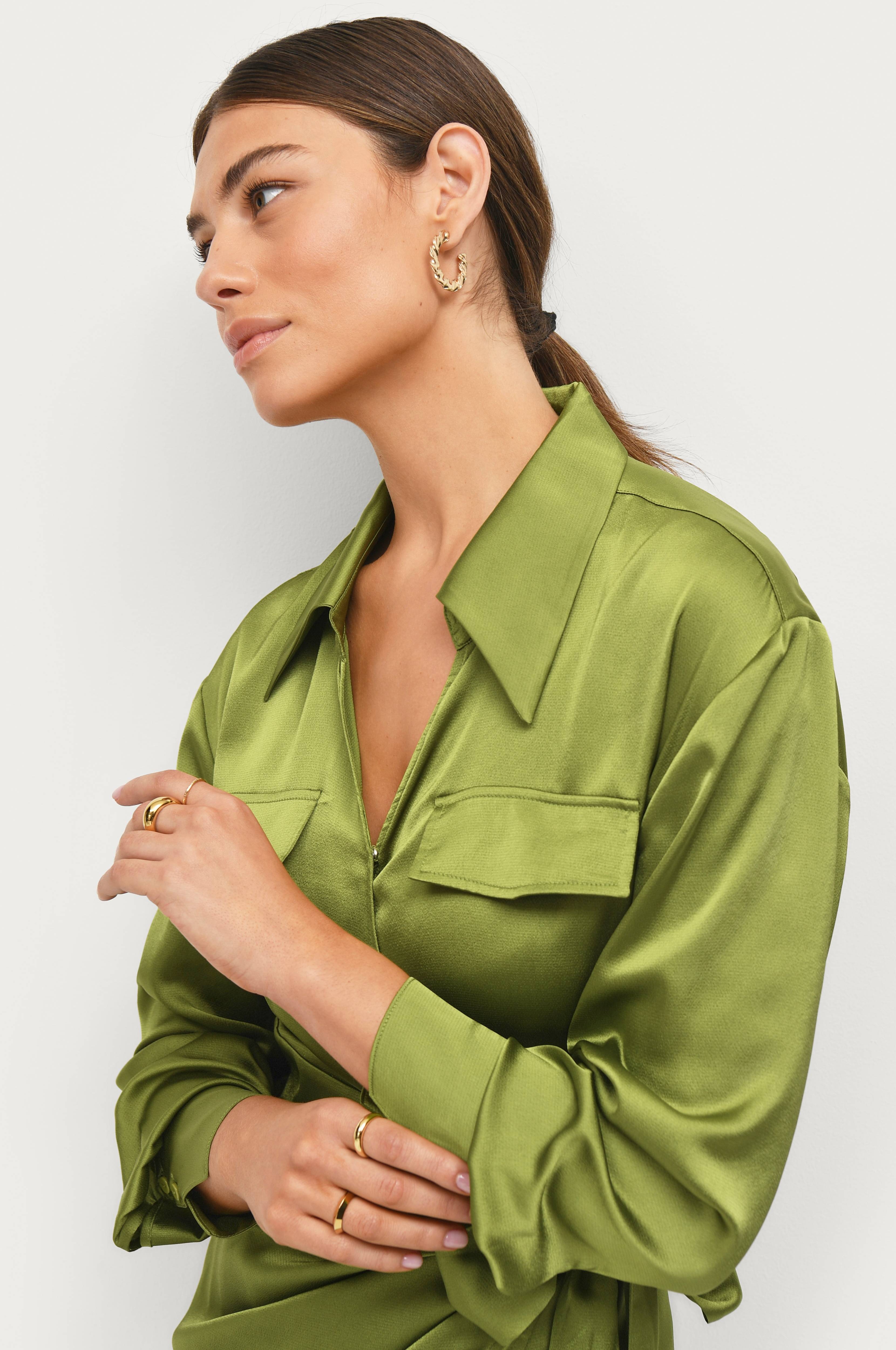 • Slå-om design med snøring og lægge i siden• Snydelommer på brystet• Lange ærmer med manchet• Kvalitet med glans• Længde: 129 cm i størrelse 34/36