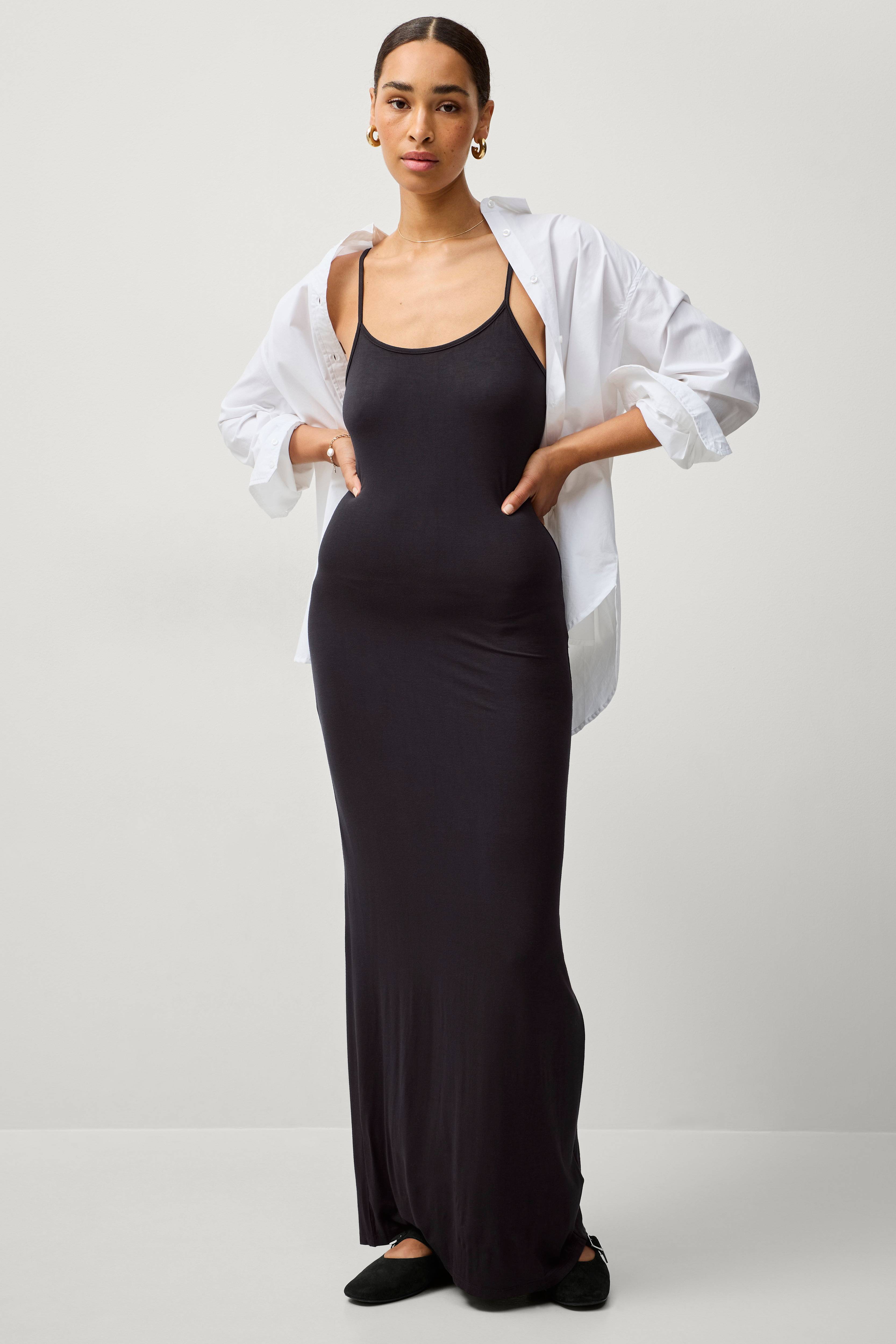 • Lang, ærmeløs model• Rund hals• Tynde, justérbare skulderstropper• Længde: 146 cm i størrelse 34/36