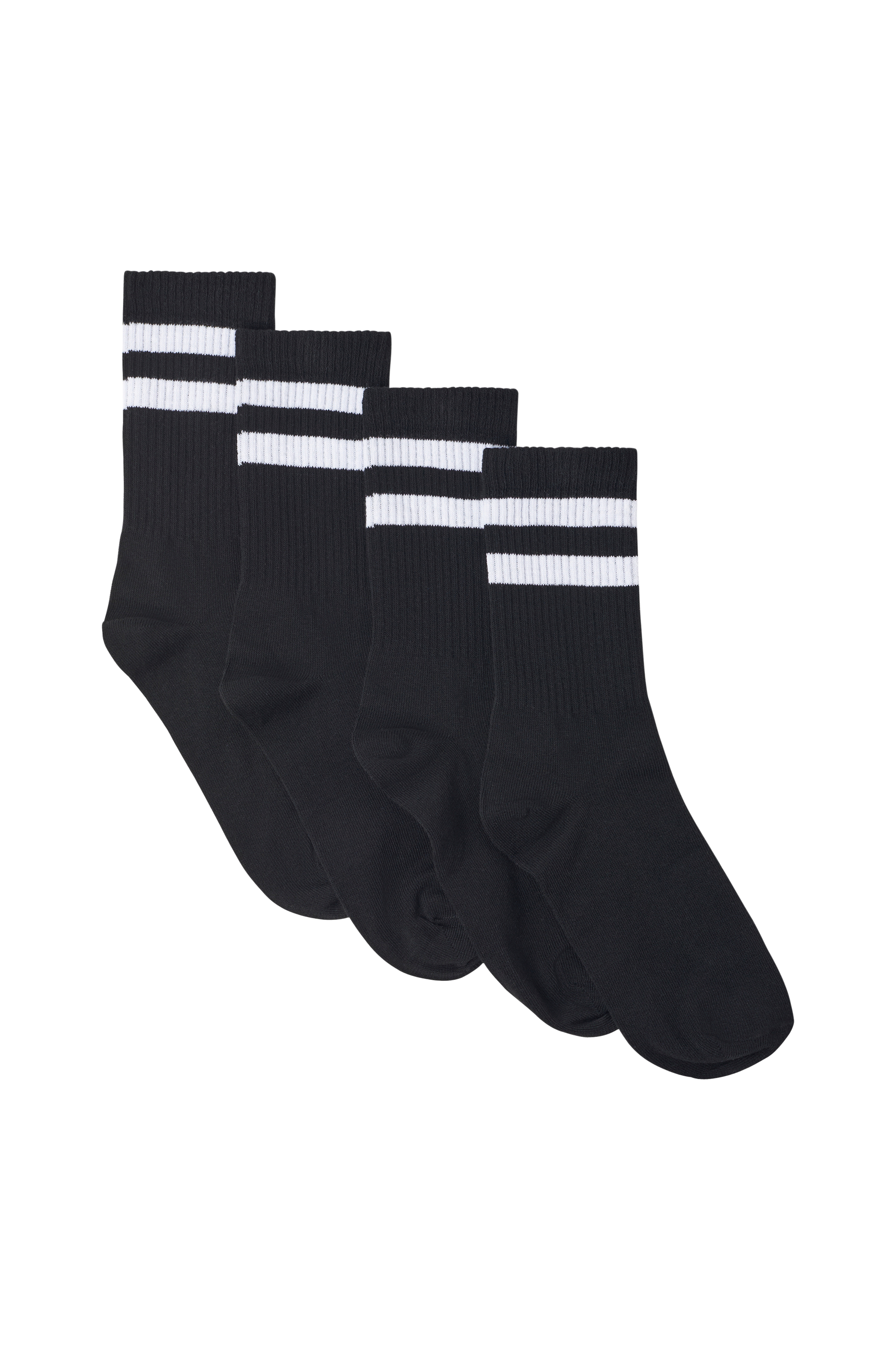 Sportsstrømper i 4-pak. Ribstrikket skaft, strikket hæl og syet tå.