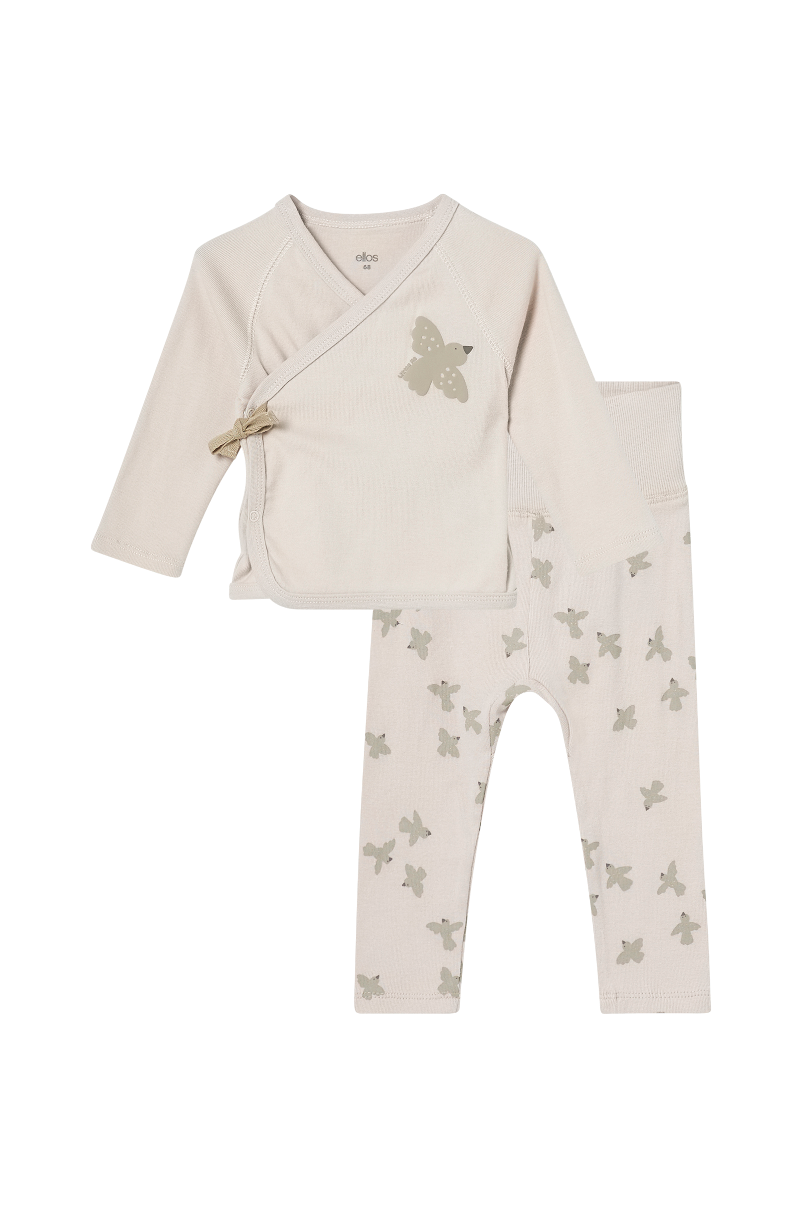 Tøjpakke til barnets første tid. Alle dele er i blød jersey af økologisk bomuld.