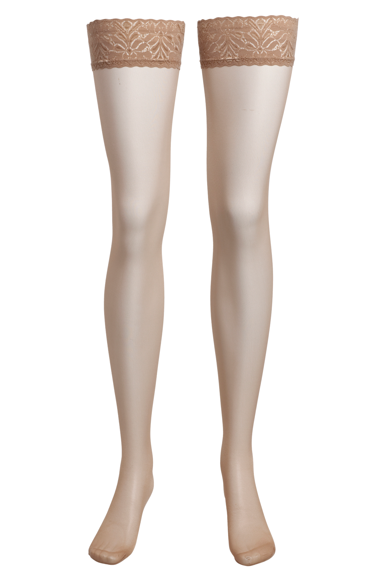 Stay-up 20 den i blød og smidig kvalitet med bred blondekant som har indvendig silikone foroven. Silkefølelse og fin glans. Diskret tåforstærkning. 20 denier.