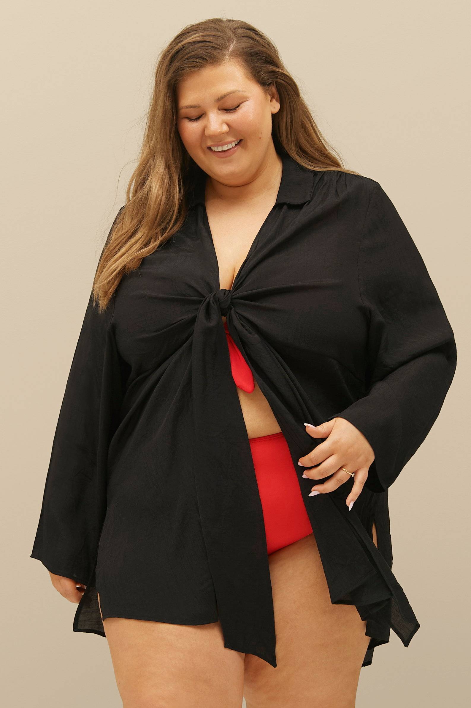 Modellen er 165 cm høj og bærer en str. 50/52