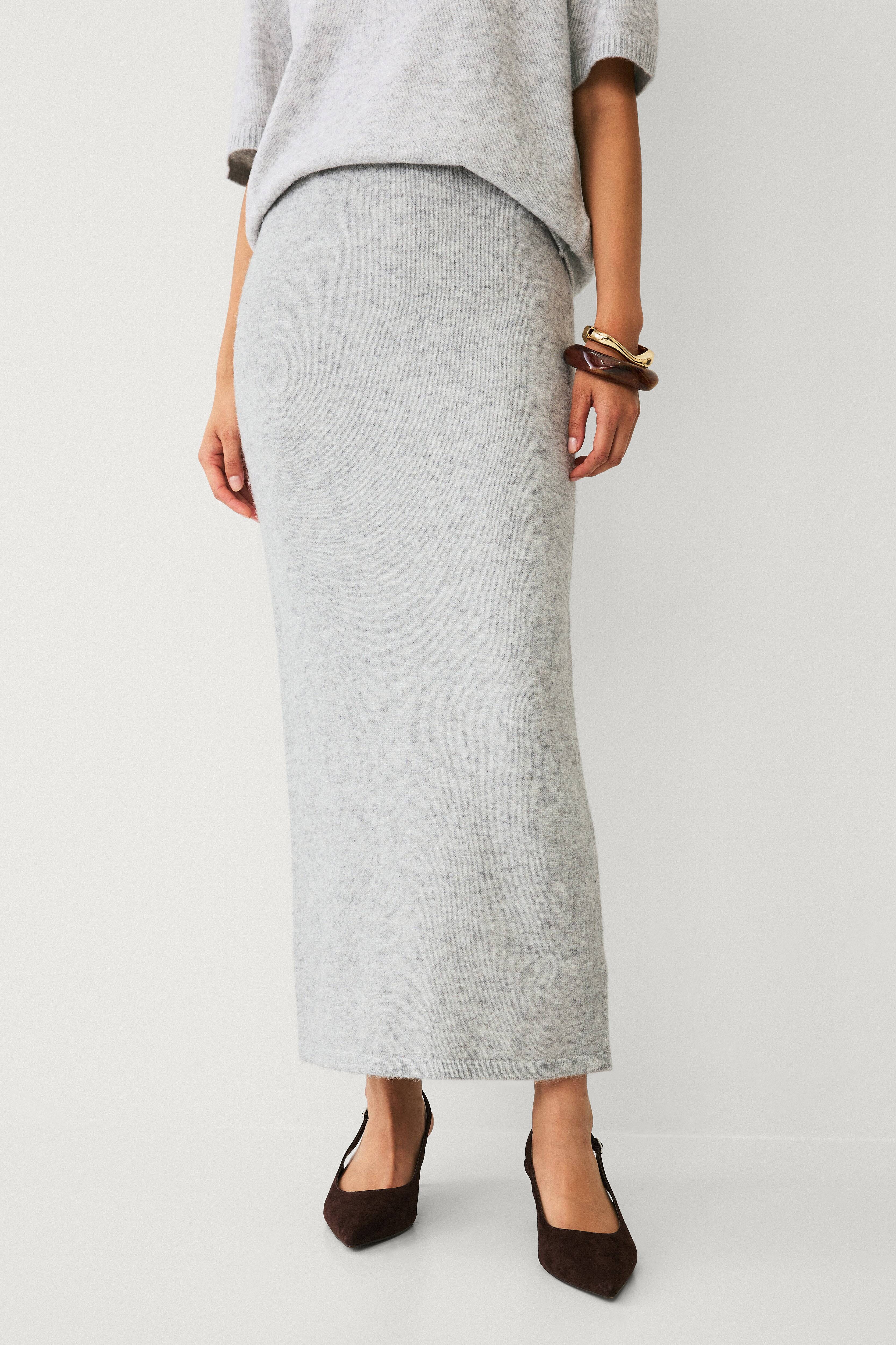 Fin strikket nederdel, der ikke klør, i en dejlig marineblå farve