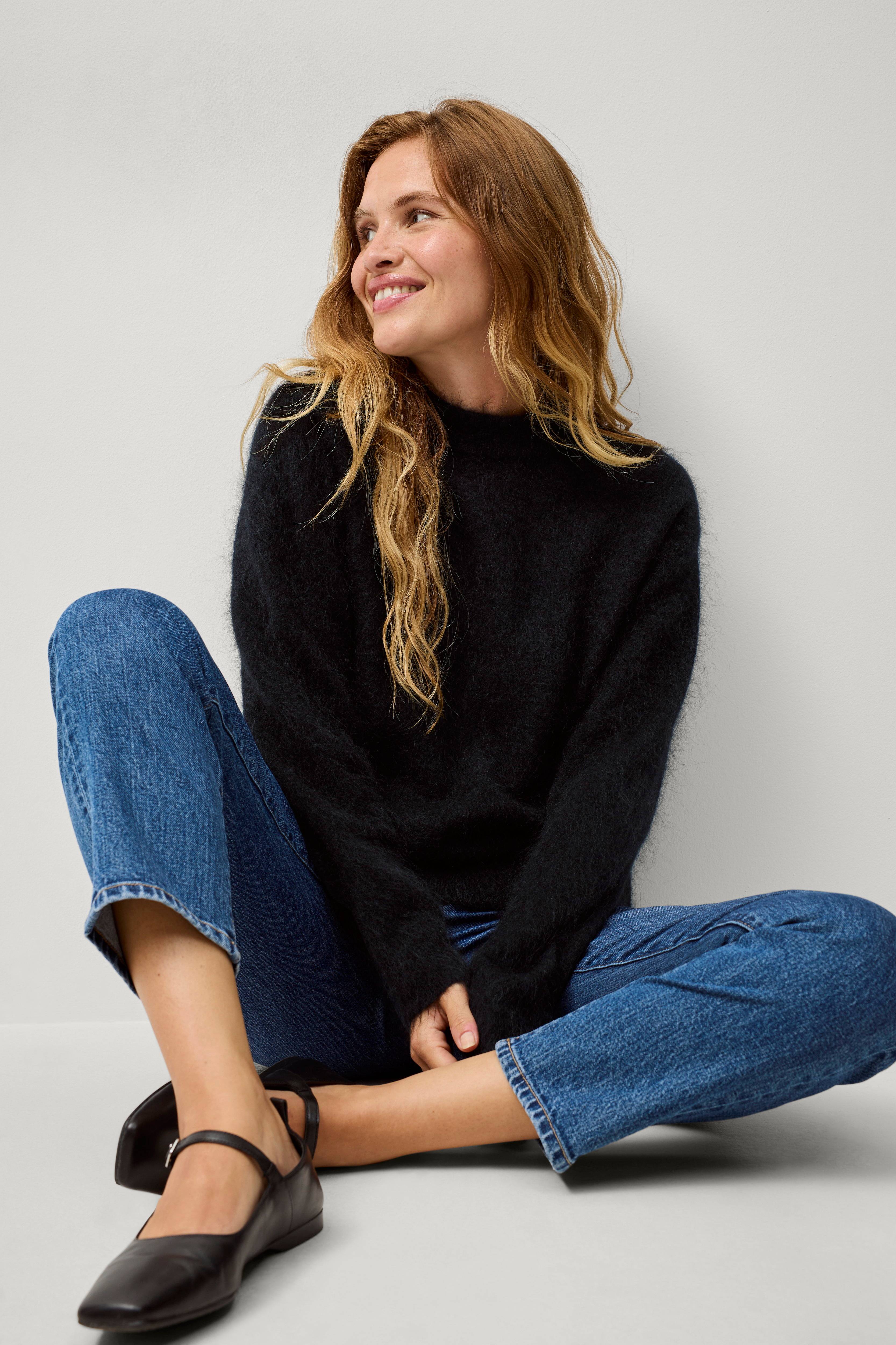 Flot sweater, lidt højere hals. Fælder meget, små sorte hår ender overalt. Flot løs model.