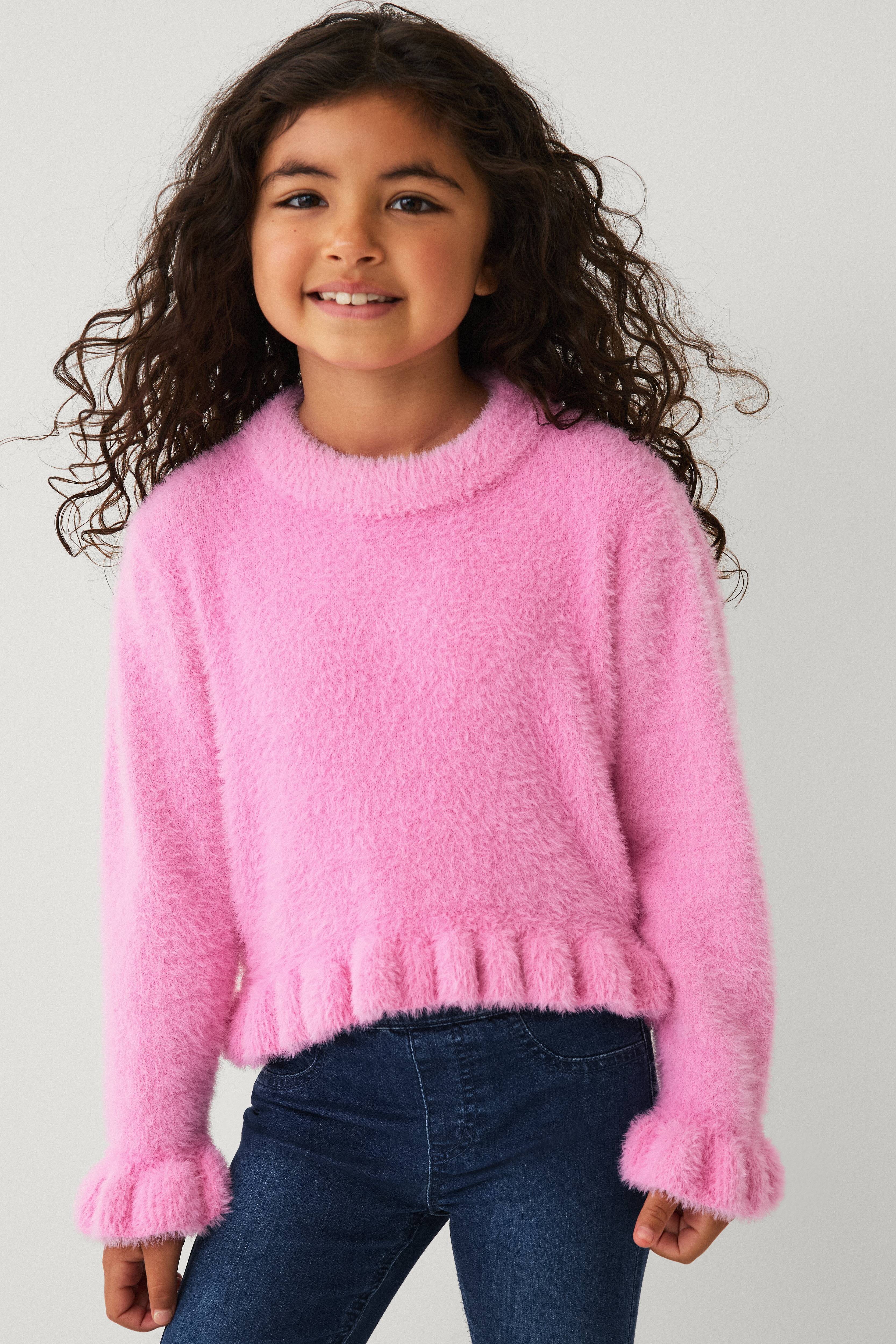 • Fintstrikket, blød trøje med rund, ribbet halsudskæring