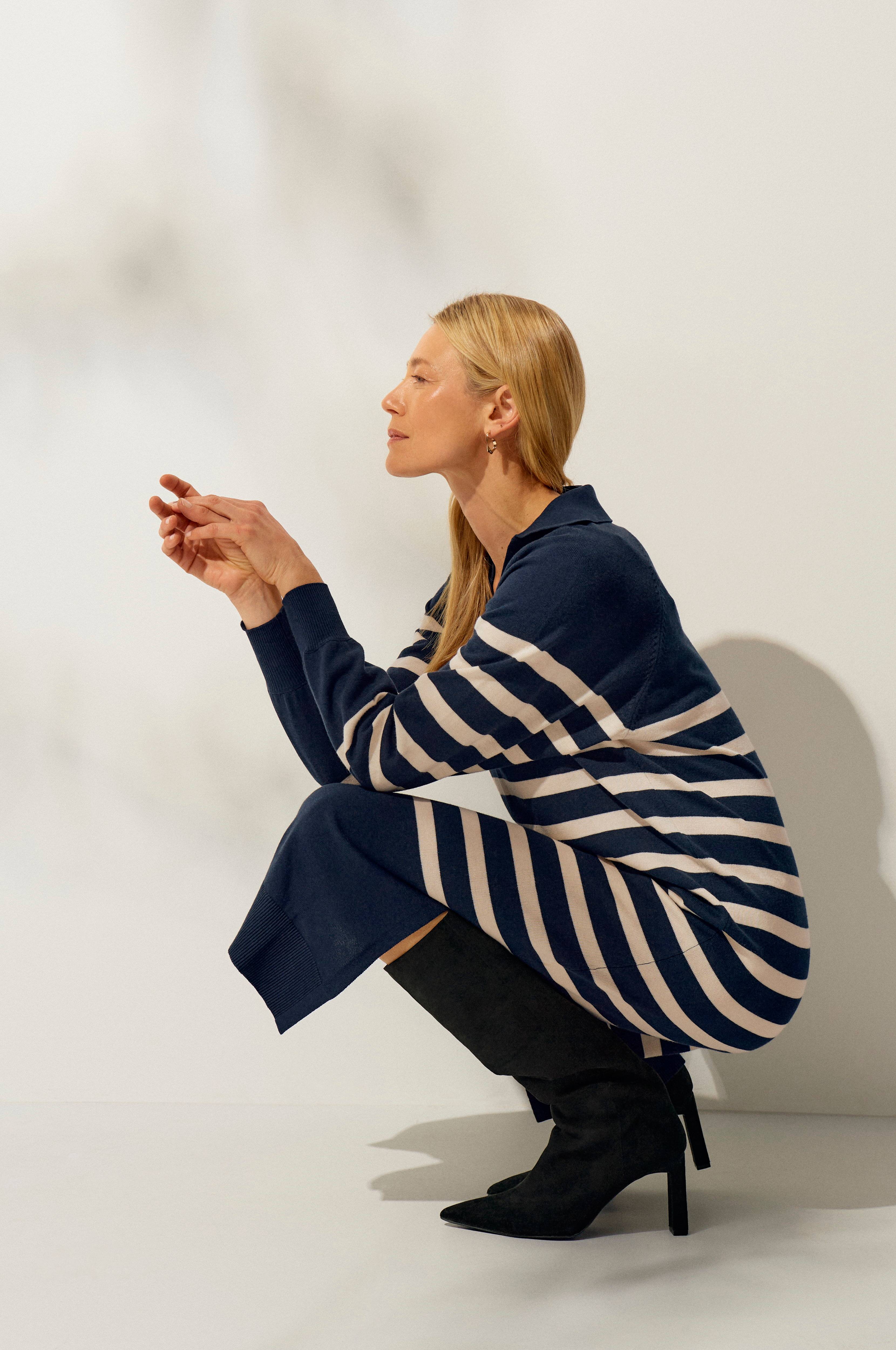 Finstrikket kjole, som er blød og dejlig at have på! Afslappet stil, flot og behagelig til både hverdag og fest. Lidt stor i størrelsen, lang i modellen. Jeg er 167 cm, den går ned ti…