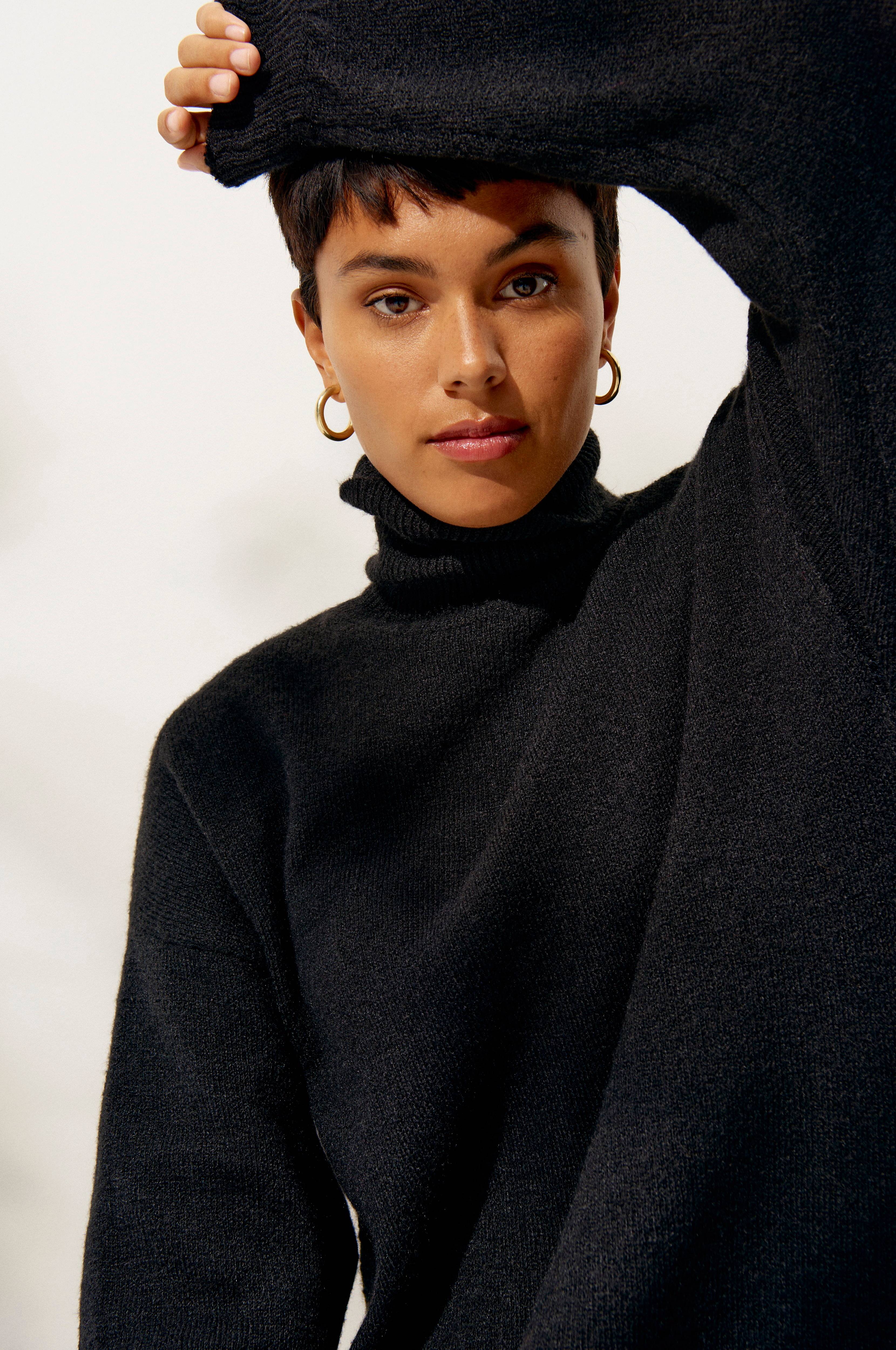• Lige model • Nedsænkede skuldre • Ribbet polokrave • Blød, strikket kvalitet • Længde: 96 cm i størrelse 34/36 • Produktet indeholder genindvundet materiale, som genbruges for at reducere mængden af affald samtidigt med at der ikke anvendes nye ressourcer.