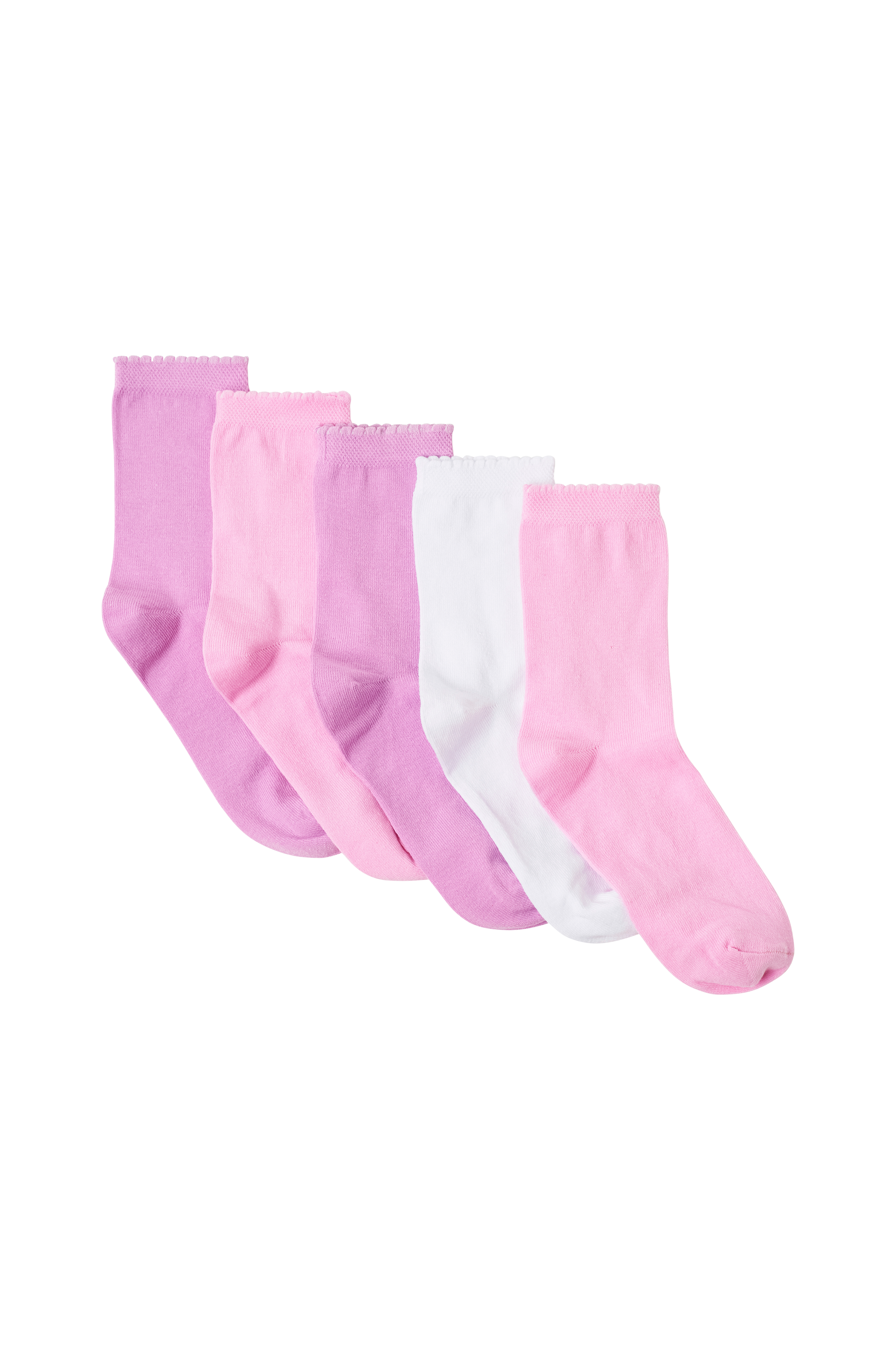• Strømpe i blød bomuldsblanding• Højt design• Ribning med bølget kant• 5-pak