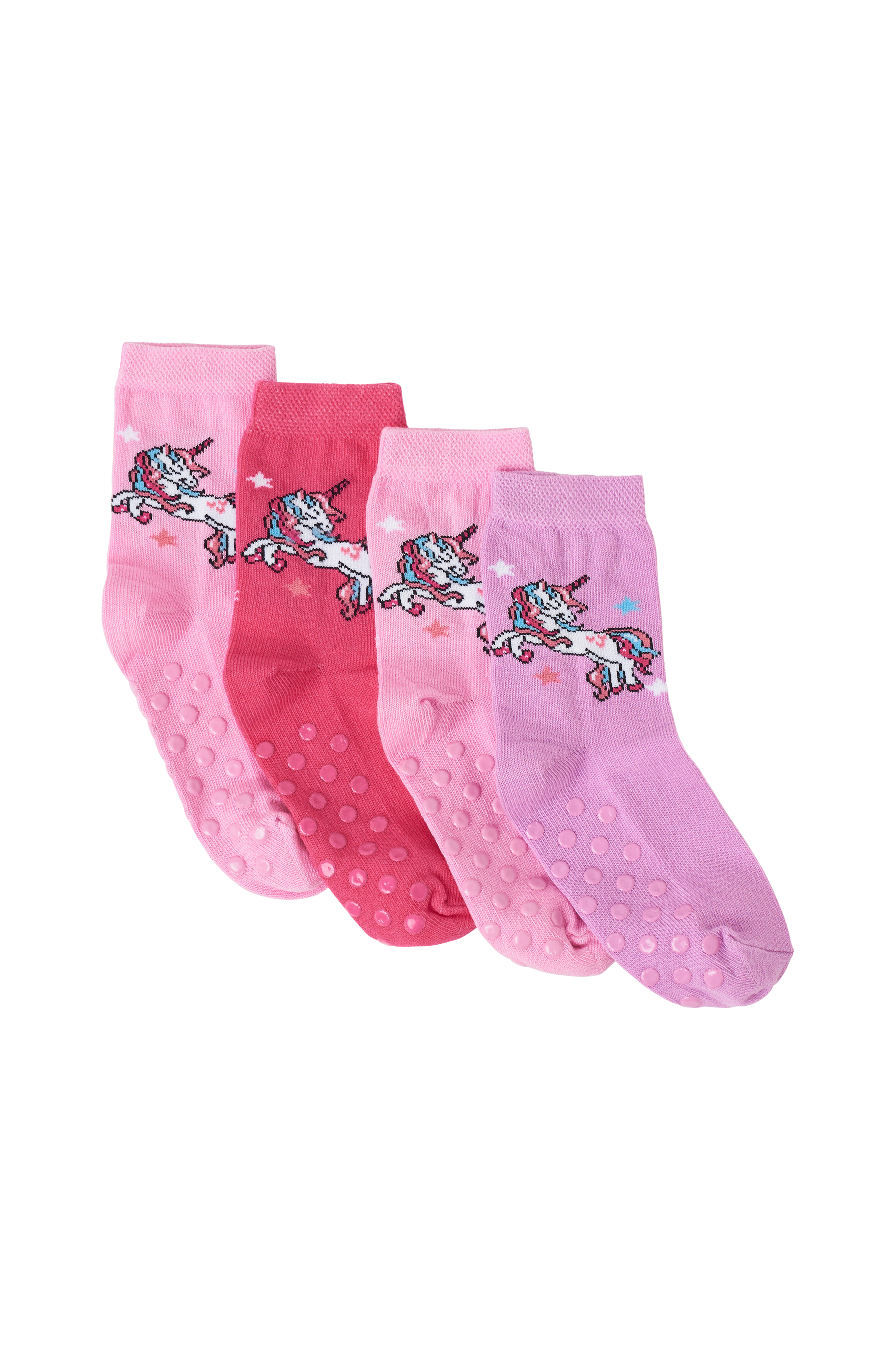 About 1/3 rubber dots fell of the first day my daughter had it on. I don't think that the rest will survive washing. 2 stars because size and fabric is fine.
