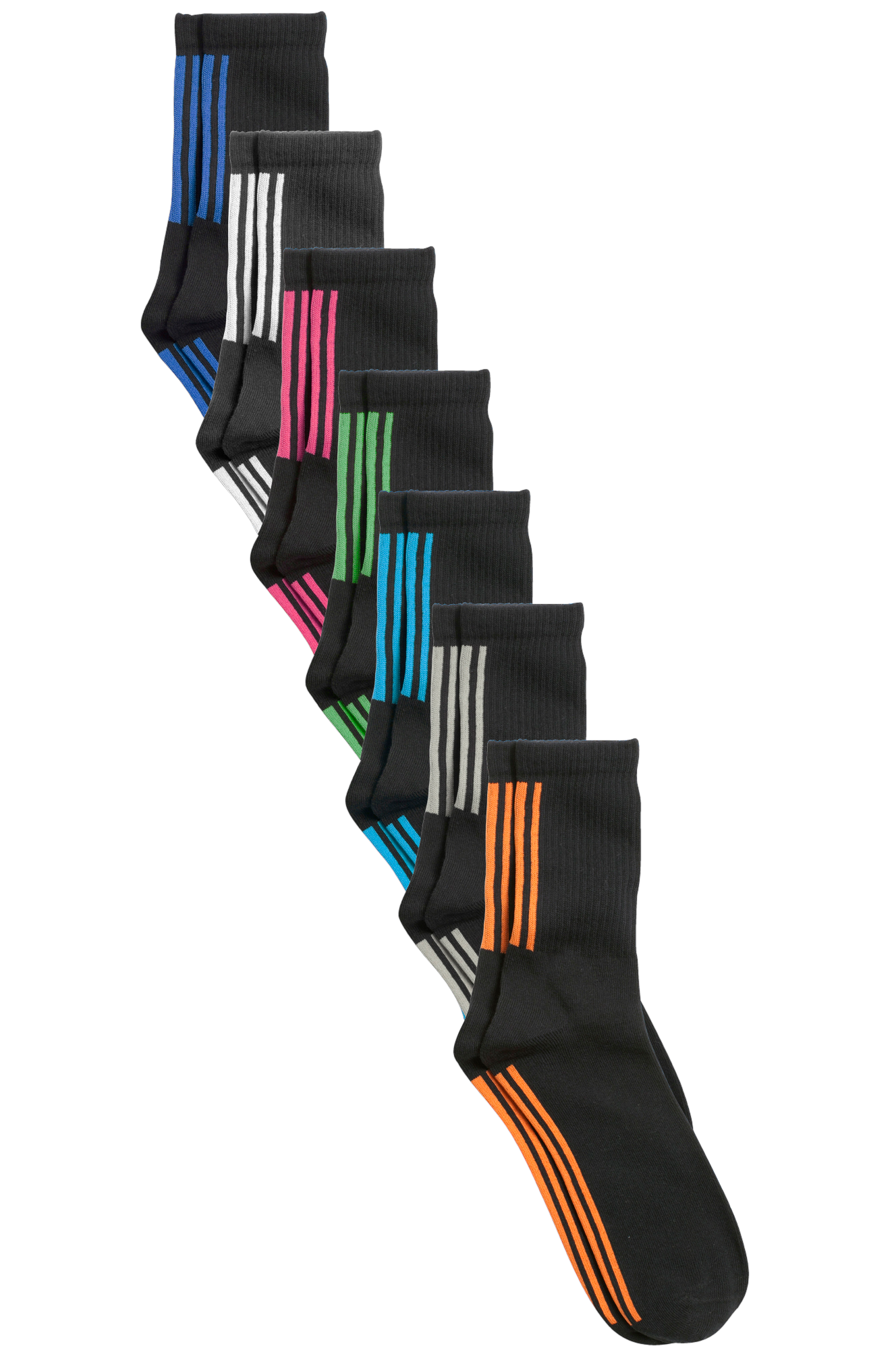 Sportsstrømper i 7-pak. Unisexmodel med kontrastfarvede striber.