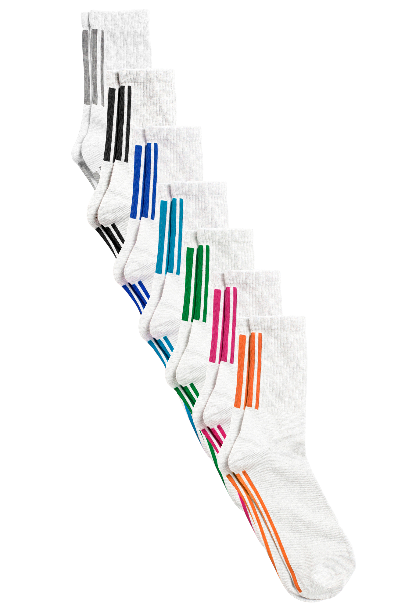 Sportsstrømper i 7-pak. Unisexmodel med kontrastfarvede striber.