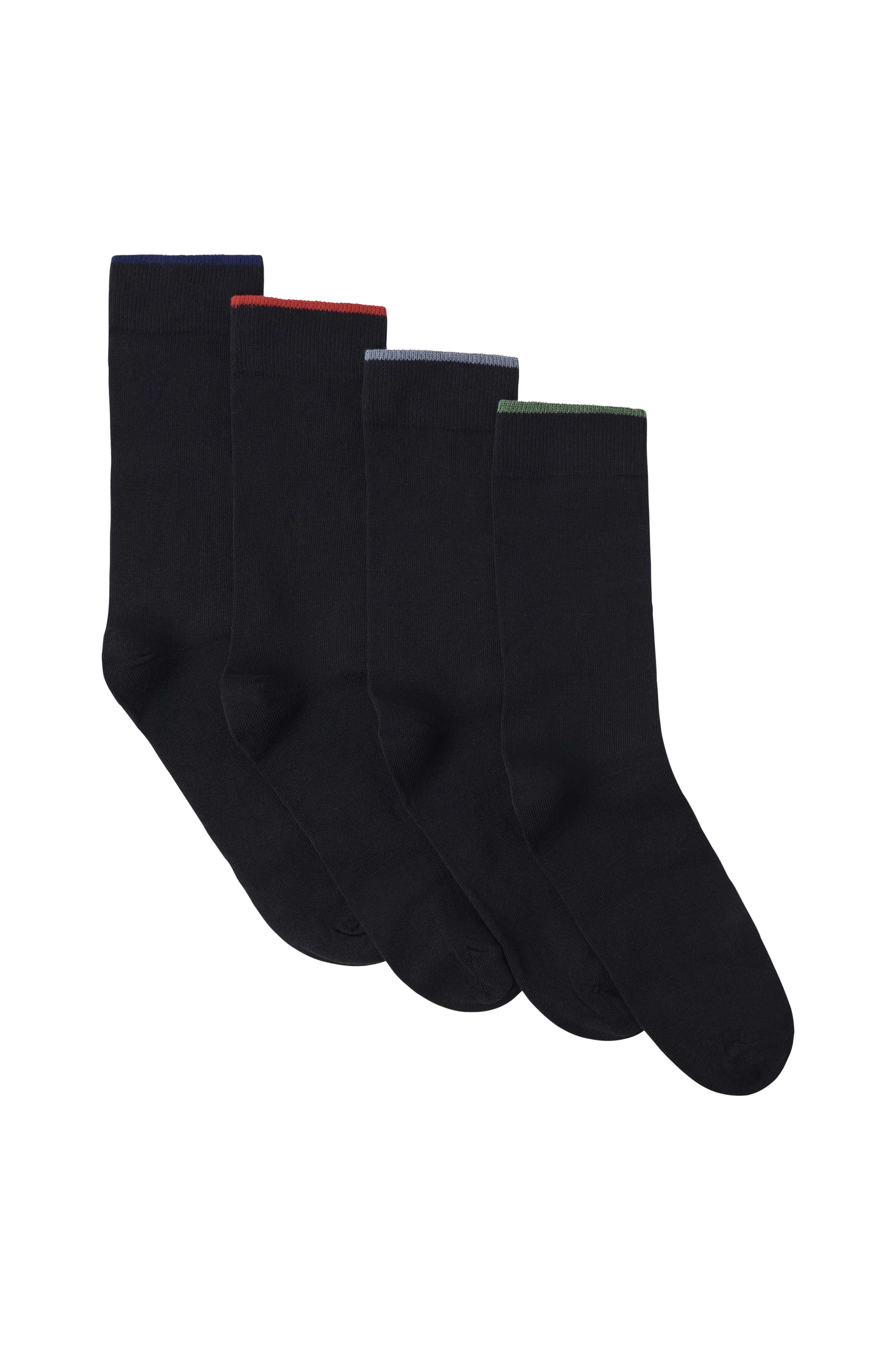 • Strømper i bomuldsblanding• Ribbet kant på skaftet• Fire par