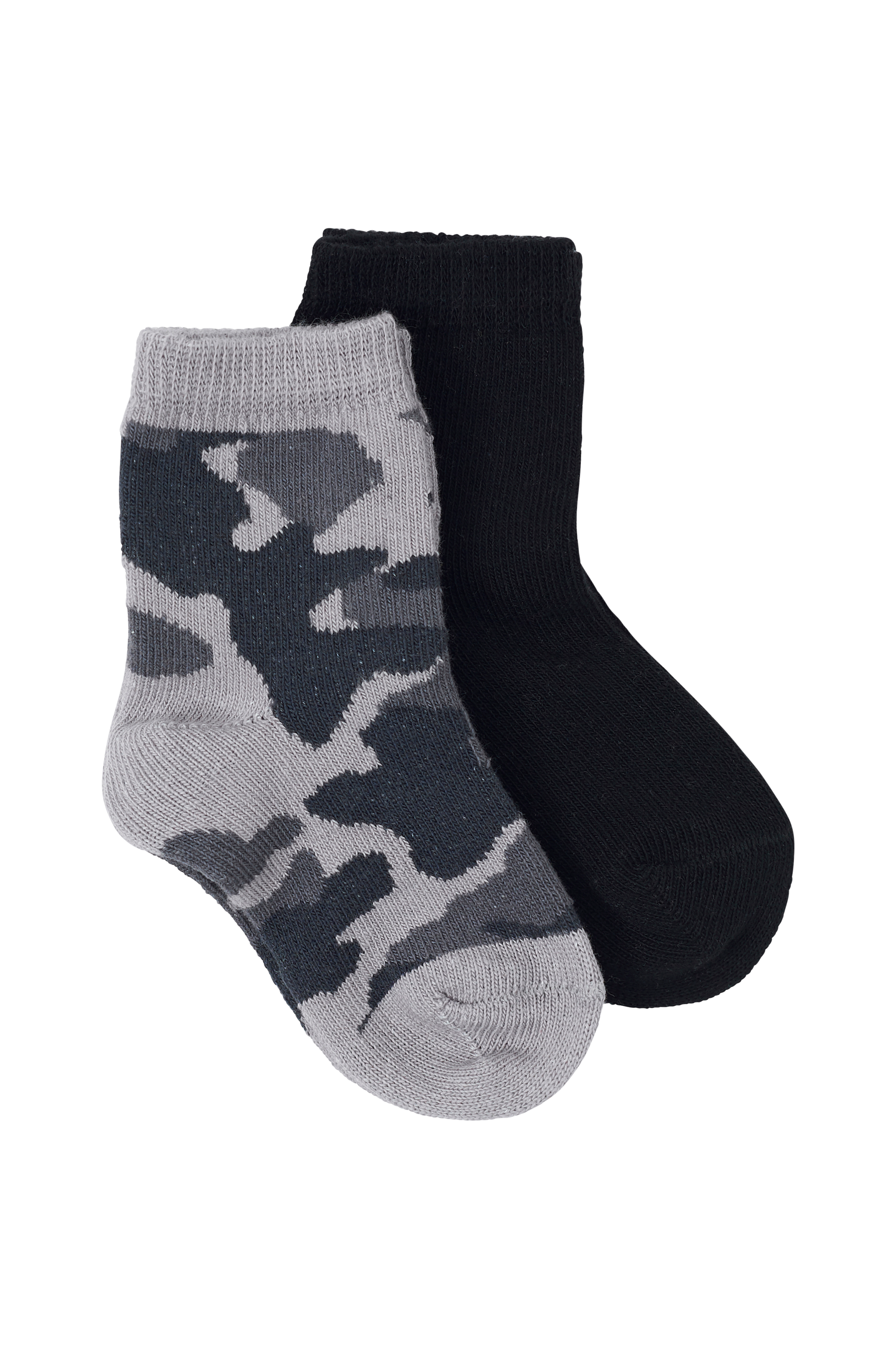Strømper i 2-pak til baby med et par mønstrede og et par ensfarvede. Ribkant på skaftet.