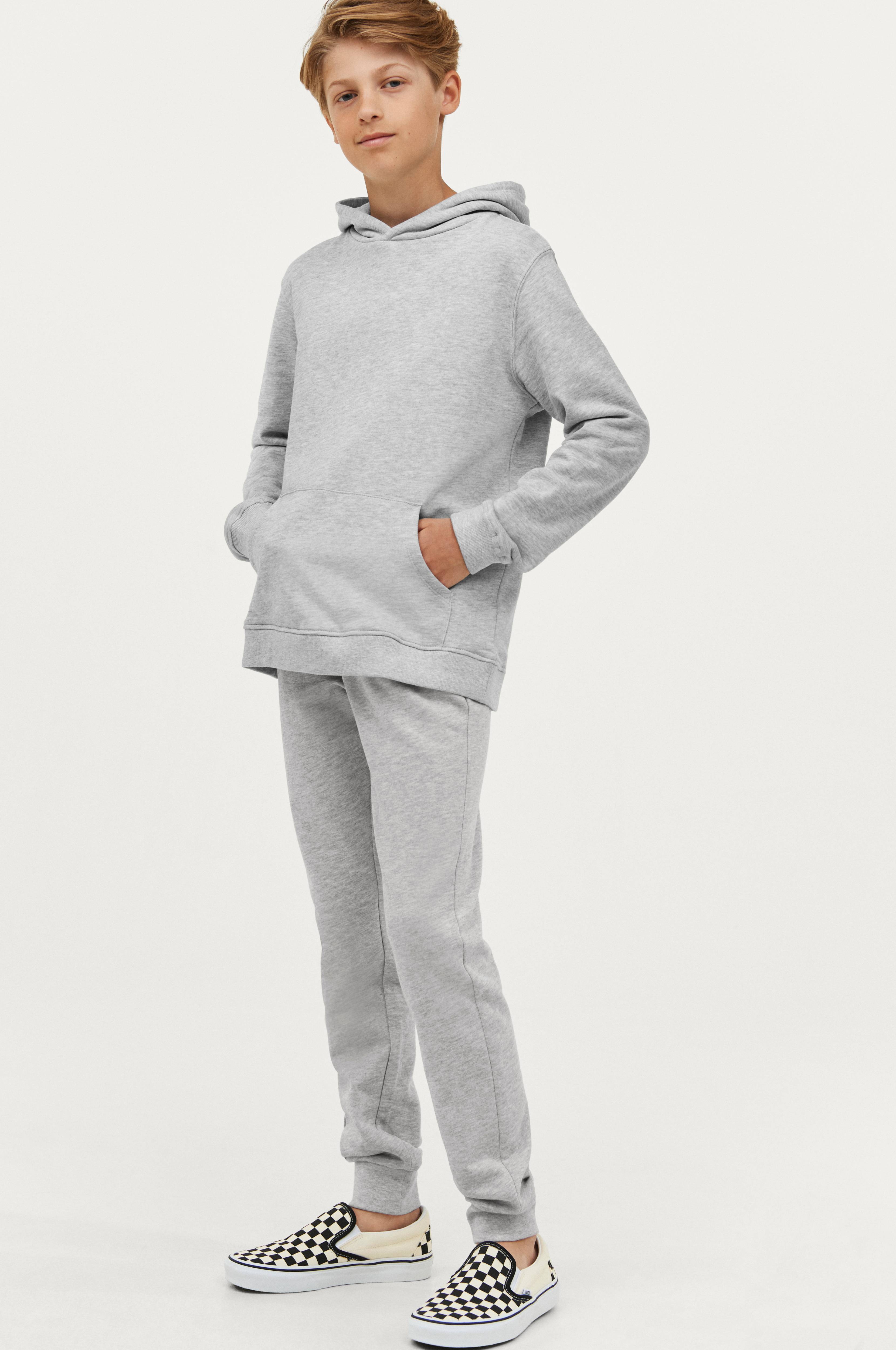 Sweatbukser i 2-pak med et par i hver farve. Model i blød kvalitet med vidde i lårene og bukseben, der bliver smallere nedefter med påsyet ribkant. Indsatte lommer i siderne og påsyet linning med indsat elastik og indsat løbegang.