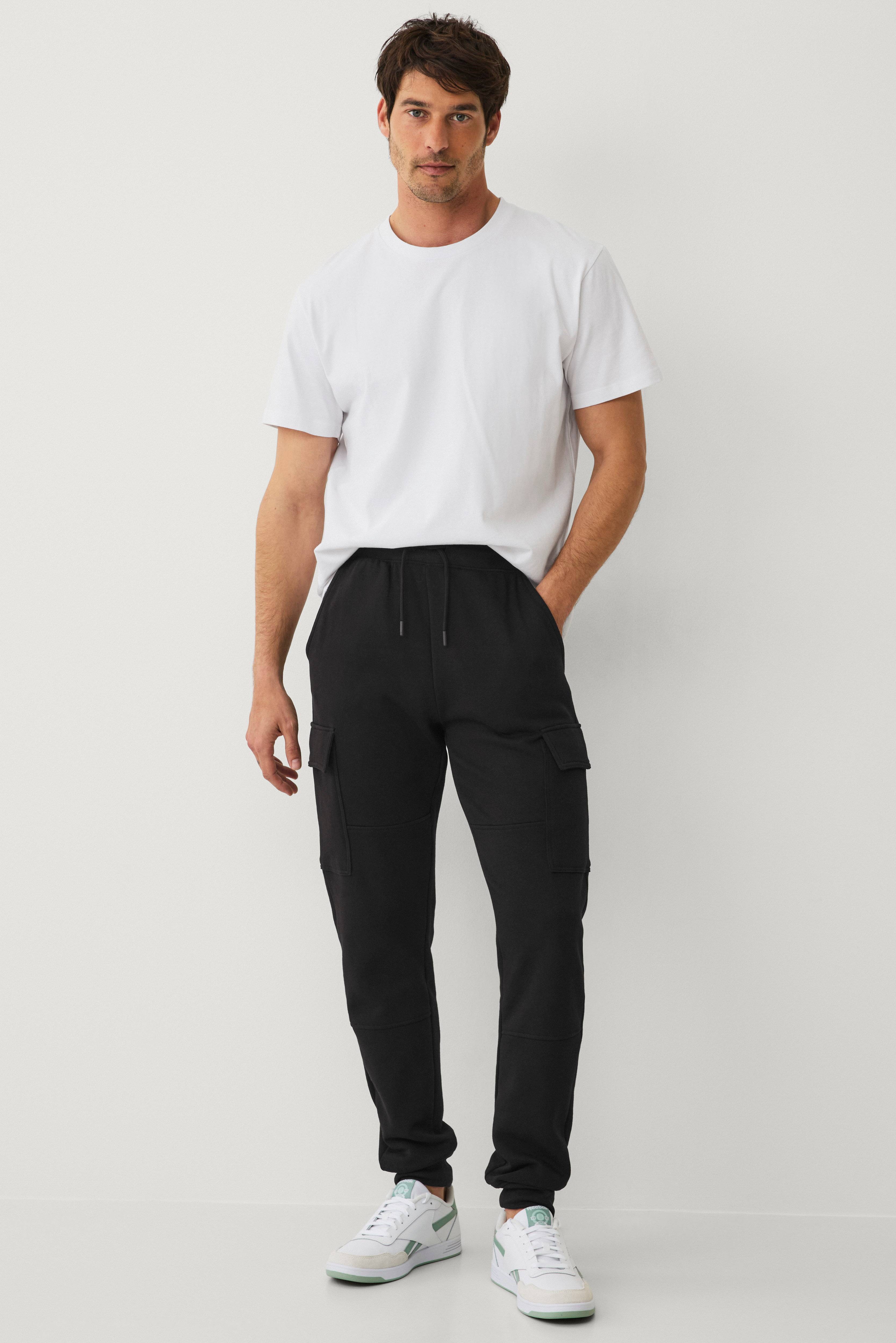 • Blød, børstet inderside• Elastisk talje med træksnørre• Sidelommer• To benlommer med trykknapslukning• Ribmanchetter ved enden af benene