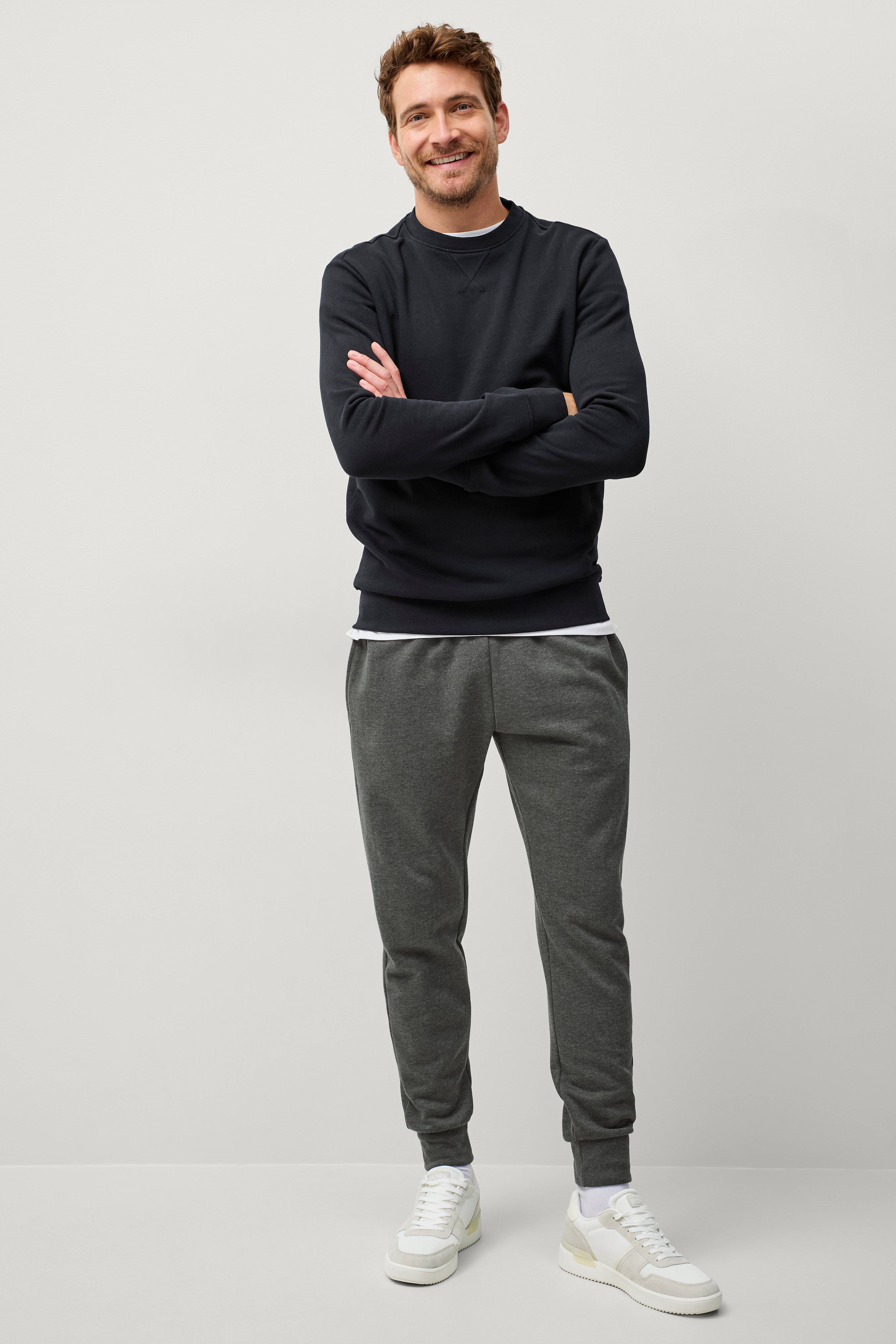 Sweatbukser i bomuld med blød, børstet inderside. Elastisk talje med løbegang og bred ribkant i benkant. Lommer i siderne. Benlængde ca. 80 cm i str. M.