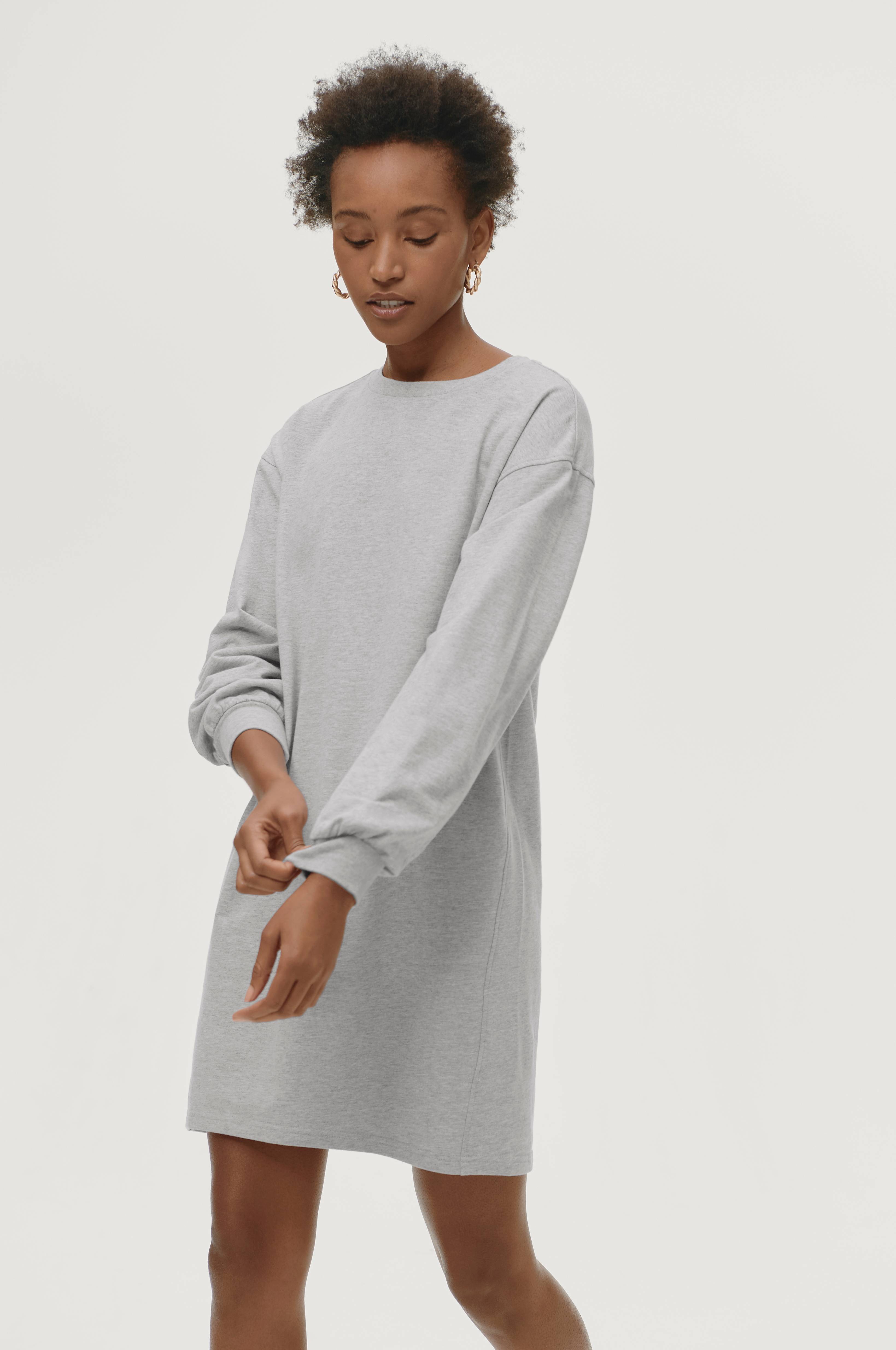 Sweatkjole Zoey med lige pasform og lange ballonærmer med ribkant i ærmekant og lav skuldersøm. Rund hals med ribkant. Længde ca. 91 cm i str. 34/36.