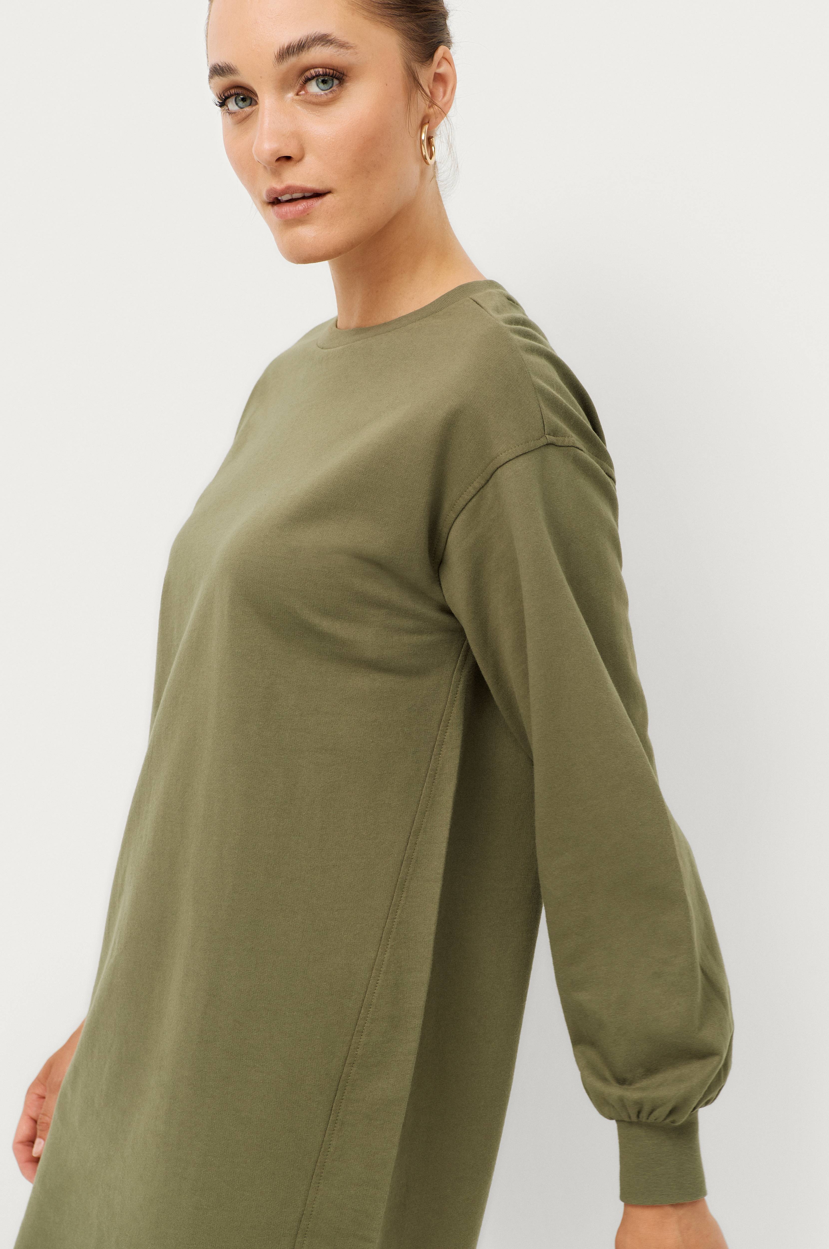 Sweatkjole Zoey med lige pasform og lange ballonærmer med ribkant i ærmekant og lav skuldersøm. Rund hals med ribkant. Længde ca. 91 cm i str. 34/36.