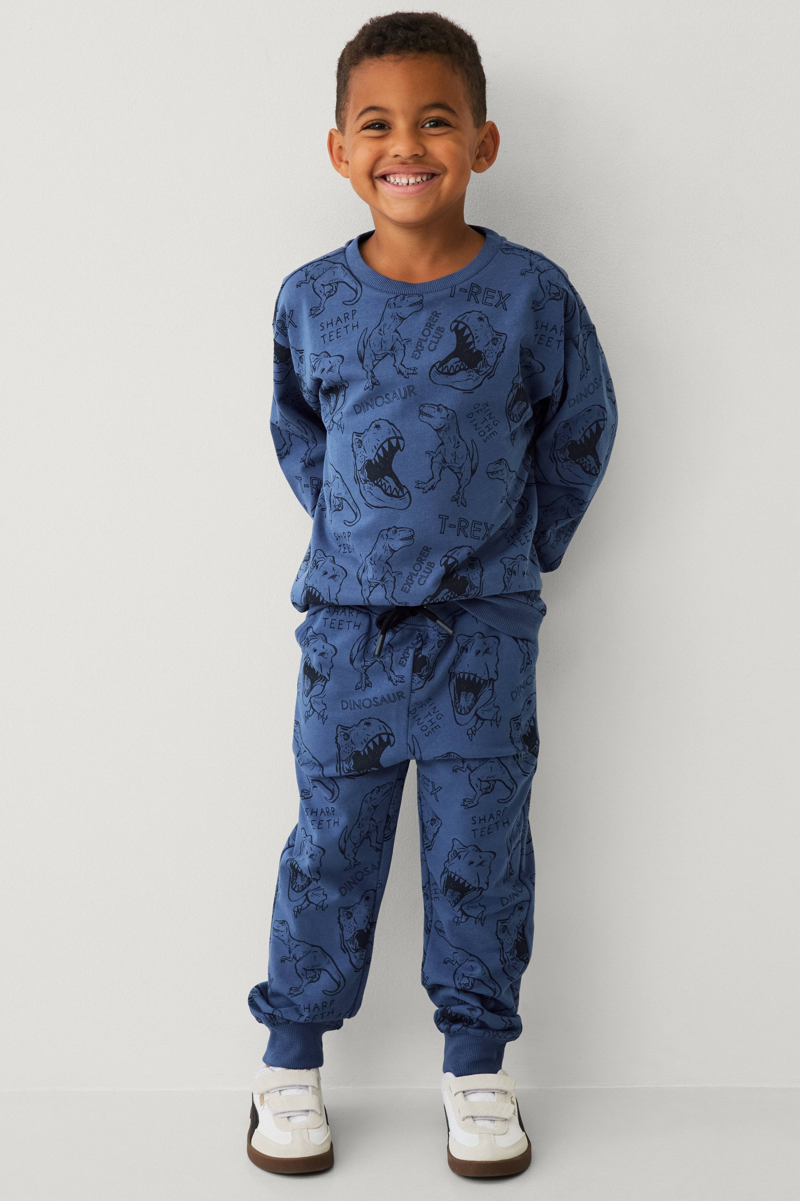 • Tynde træningsbukser med printede dinosaurerer• Elastisk talje med træksnørre• Sidelommer• Ribmanchetter ved enden af benene