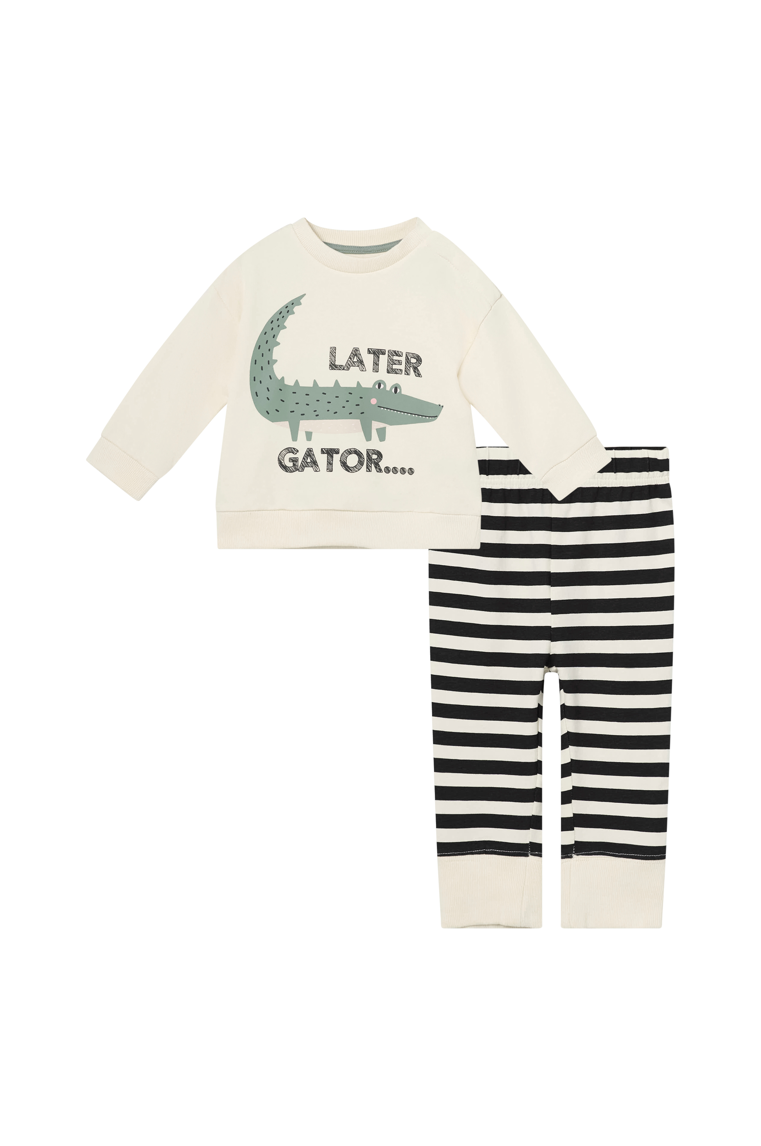 • 2-delt sæt i elastisk bomuld• Sweatshirt med blød, børstet inderside• Rund halsudskæring• Trykknapper på en skulder• Tryk foran• Ribmanchetter ved manchetterne og nederst• Leggings med elastisk talje• Ribmanchetter ved enden af benene