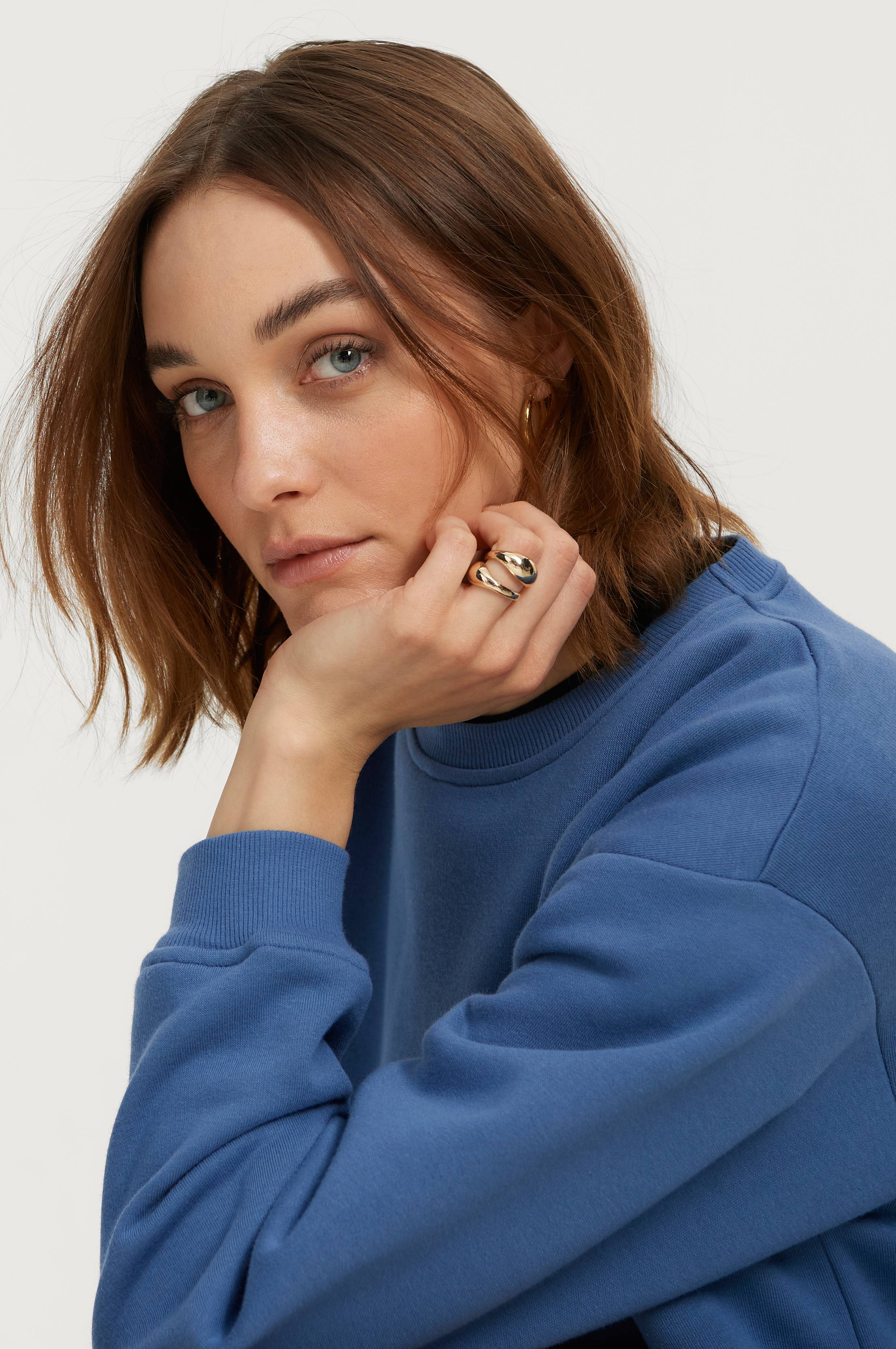 Sweatshirt i løs model med lav skuldersøm og ribkant i kant forneden, ærmekant og hals. Skøn kvalitet med blød, børstet inderside. Længde ca. 59 cm i str. 34/36.