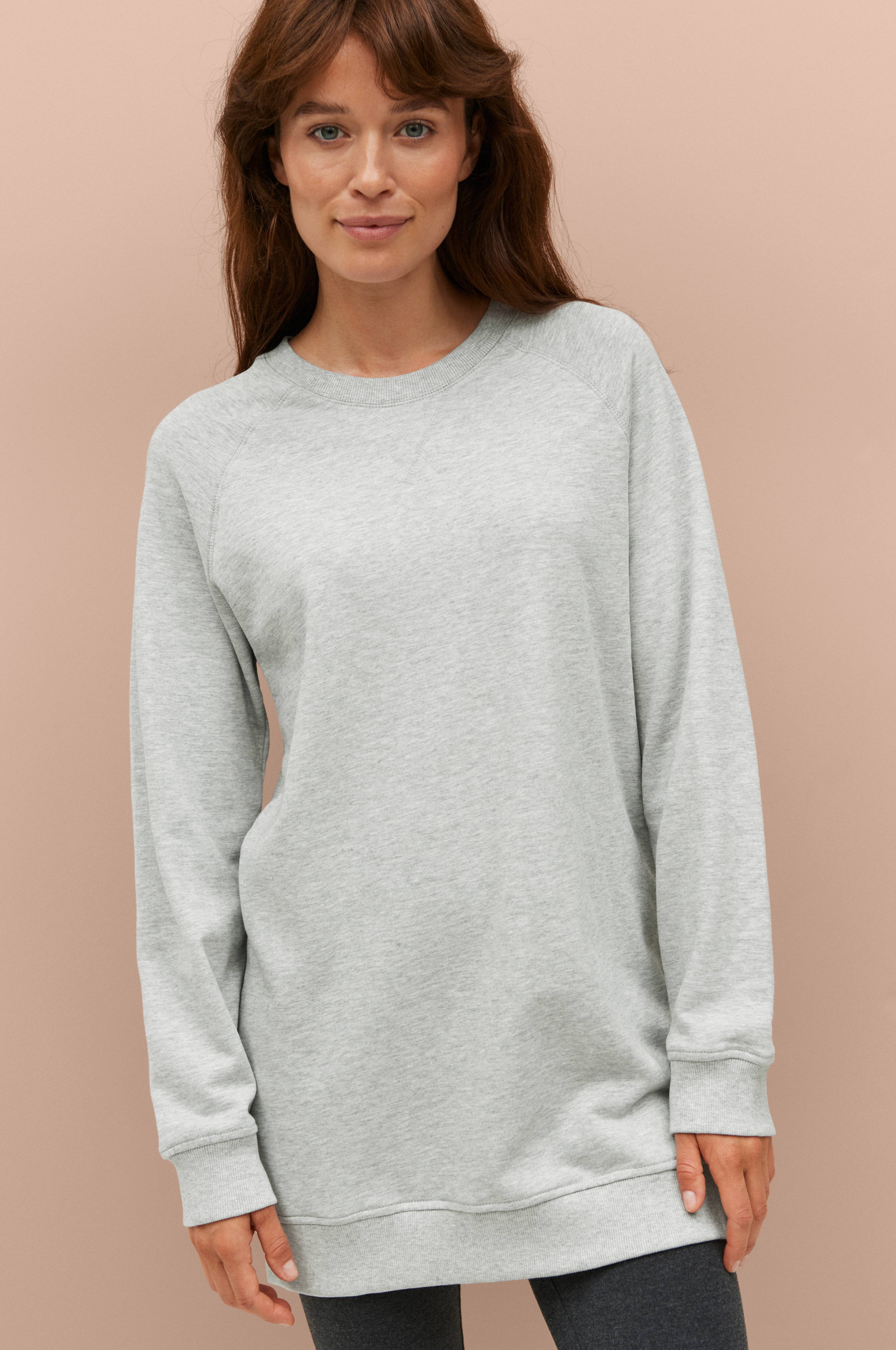 Sweatshirttunika med blød, børstet inderside. Rund halsudskæring med ribkant. Raglanærmer. Rib i ærmekant og kant forneden.