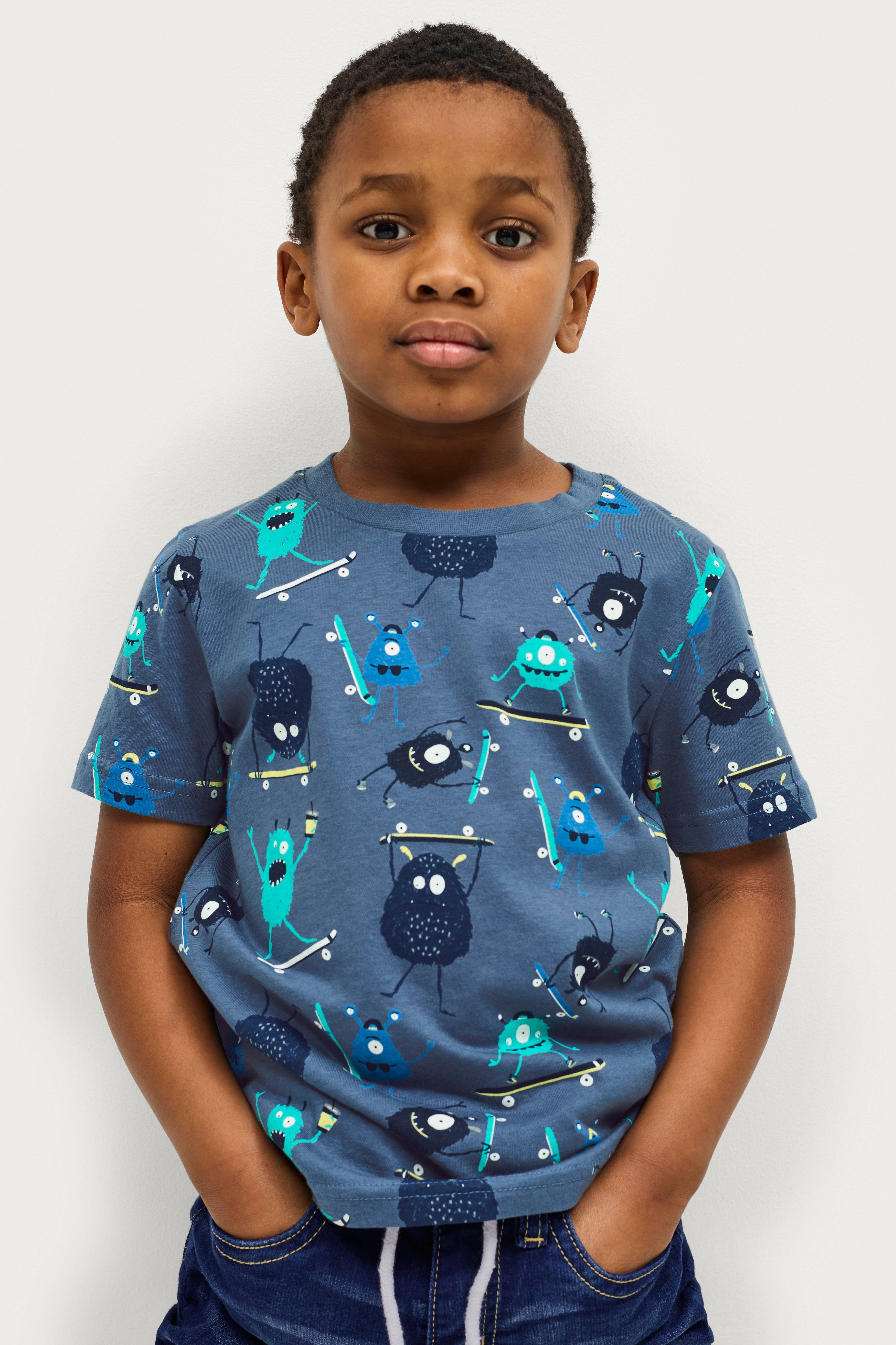• Mønstret t-shirt• Korte ærmer• Rund, ribbet halsudskæring