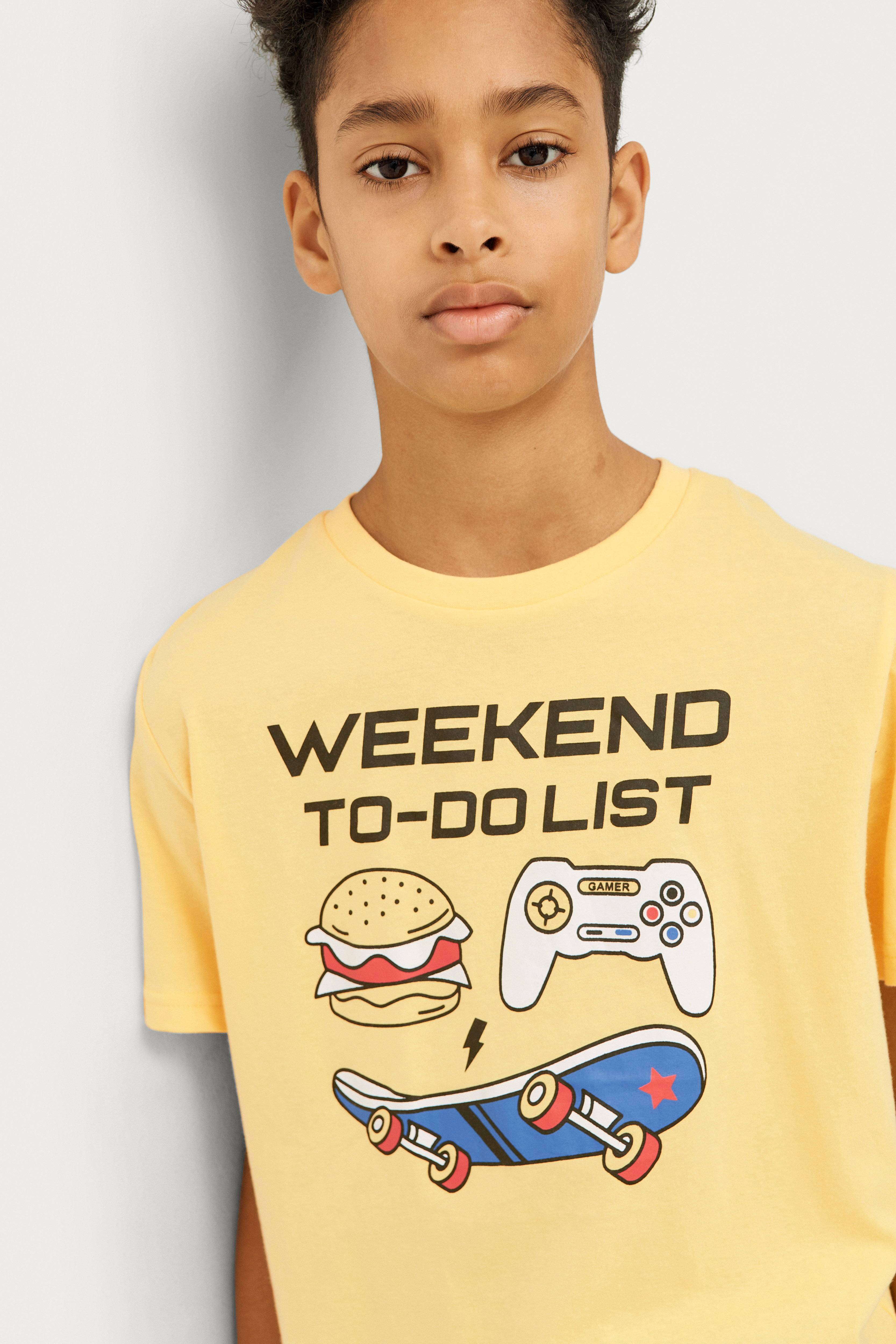 Stilfuld t-shirt, farven har holdt sig godt i vask, så vidt formen og sønnen kan lide det!