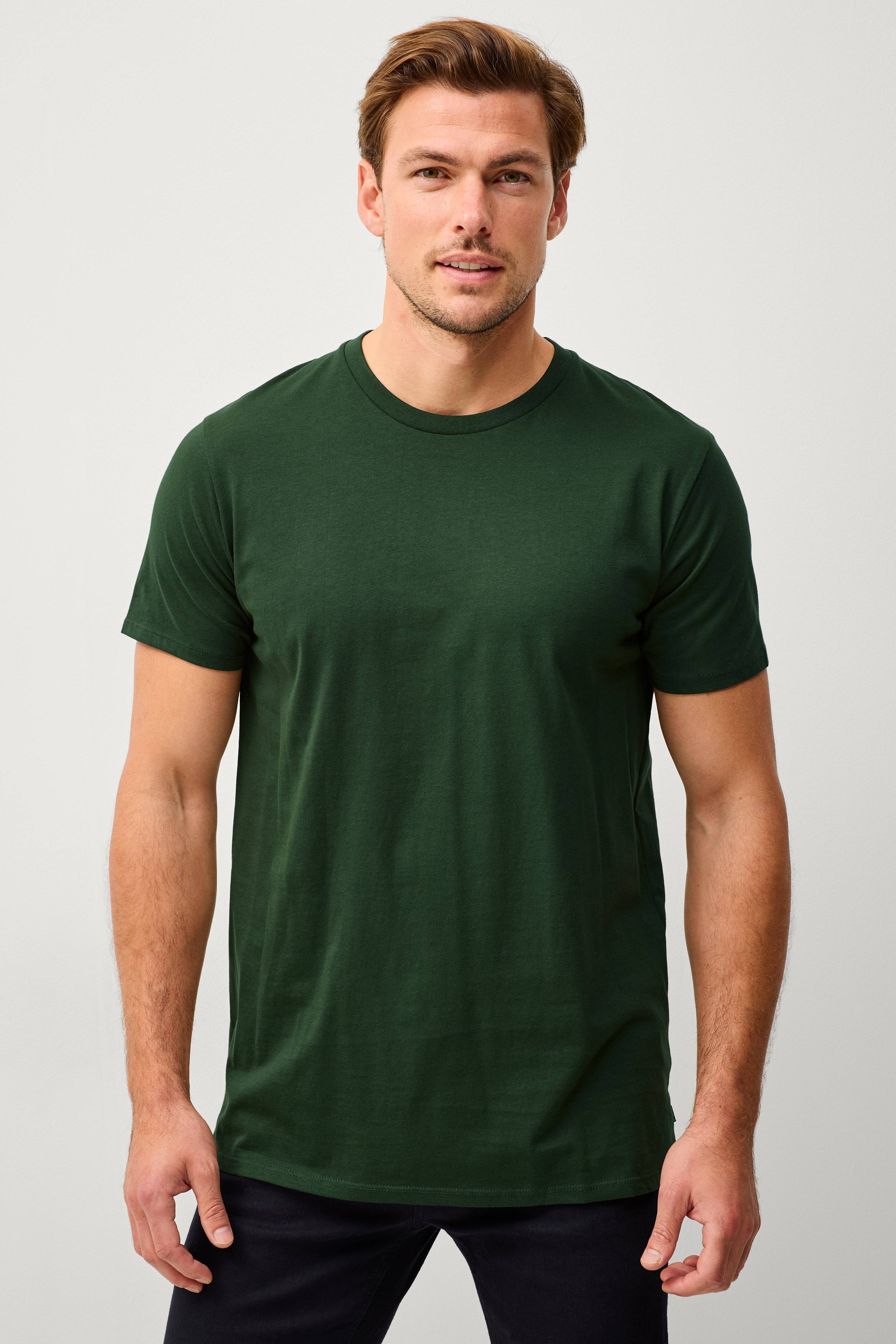 • Kortærmet t-shirt i bomuld• Rund hals• Afrundet, ribbet halsudskæring• Normal pasform