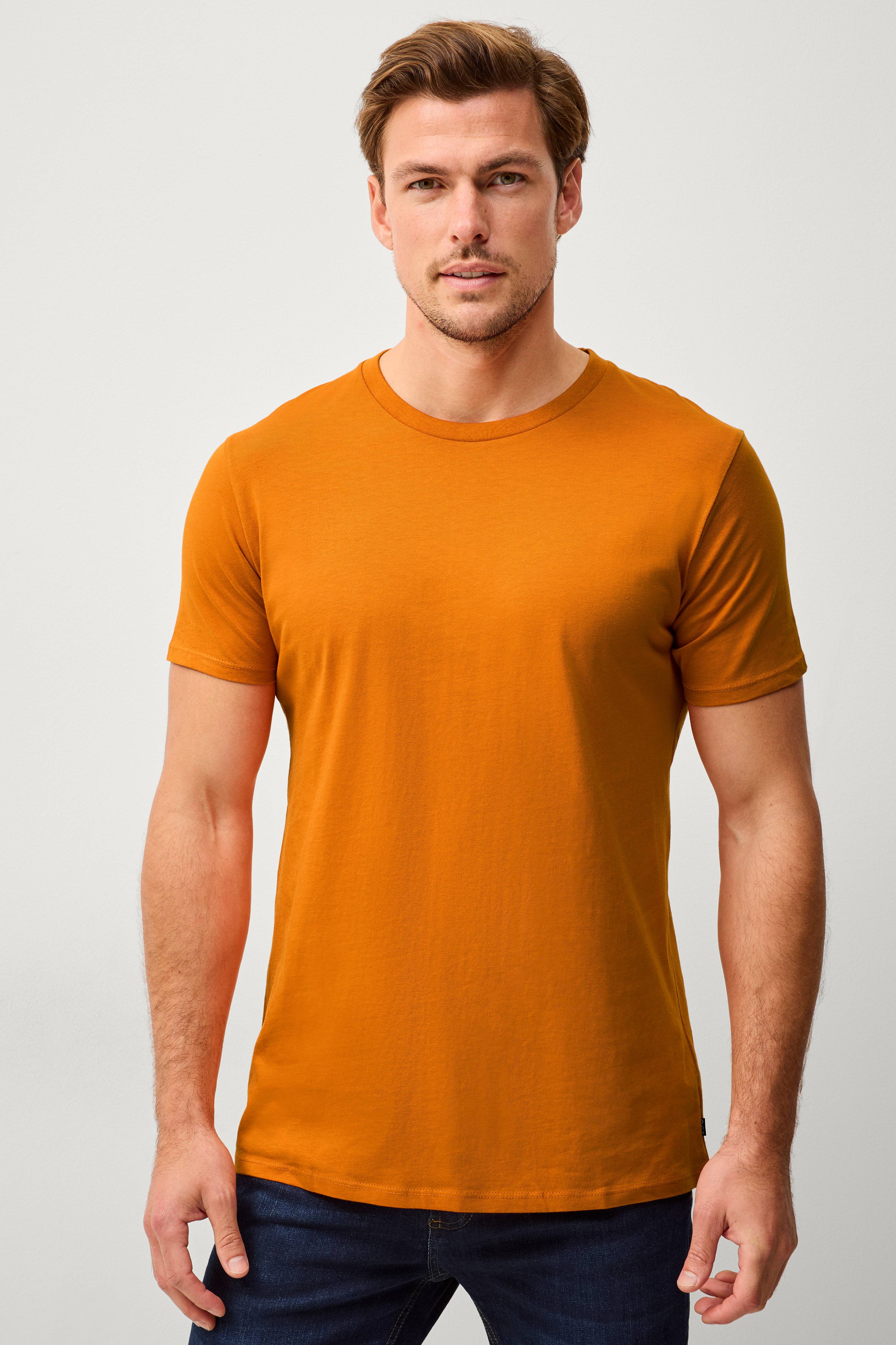 • Kortærmet t-shirt i bomuld• Rund hals• Afrundet, ribbet halsudskæring• Normal pasform