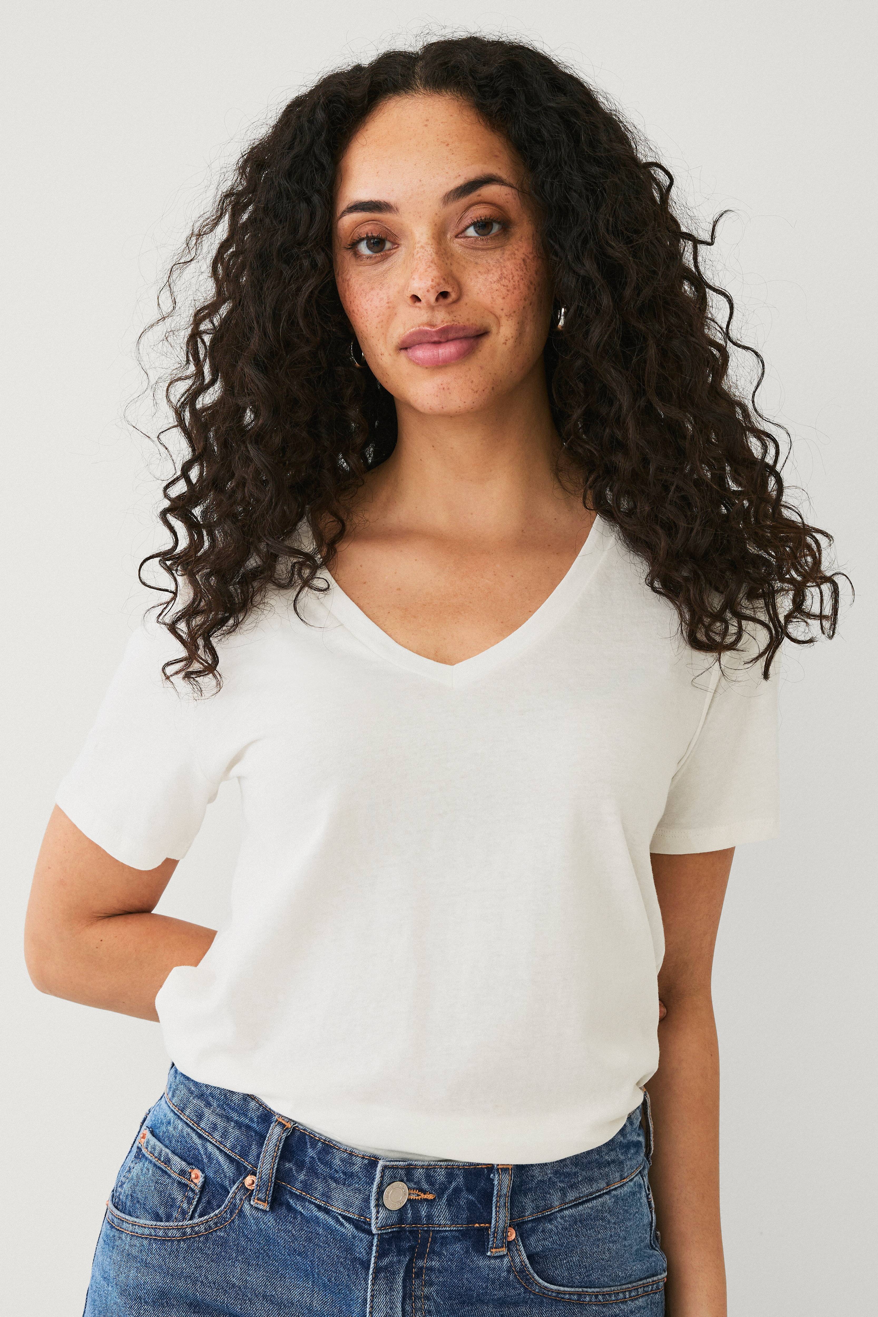 • T-shirt i bomuld• V-formet halsudskæring• Længde: 62 cm i størrelse S