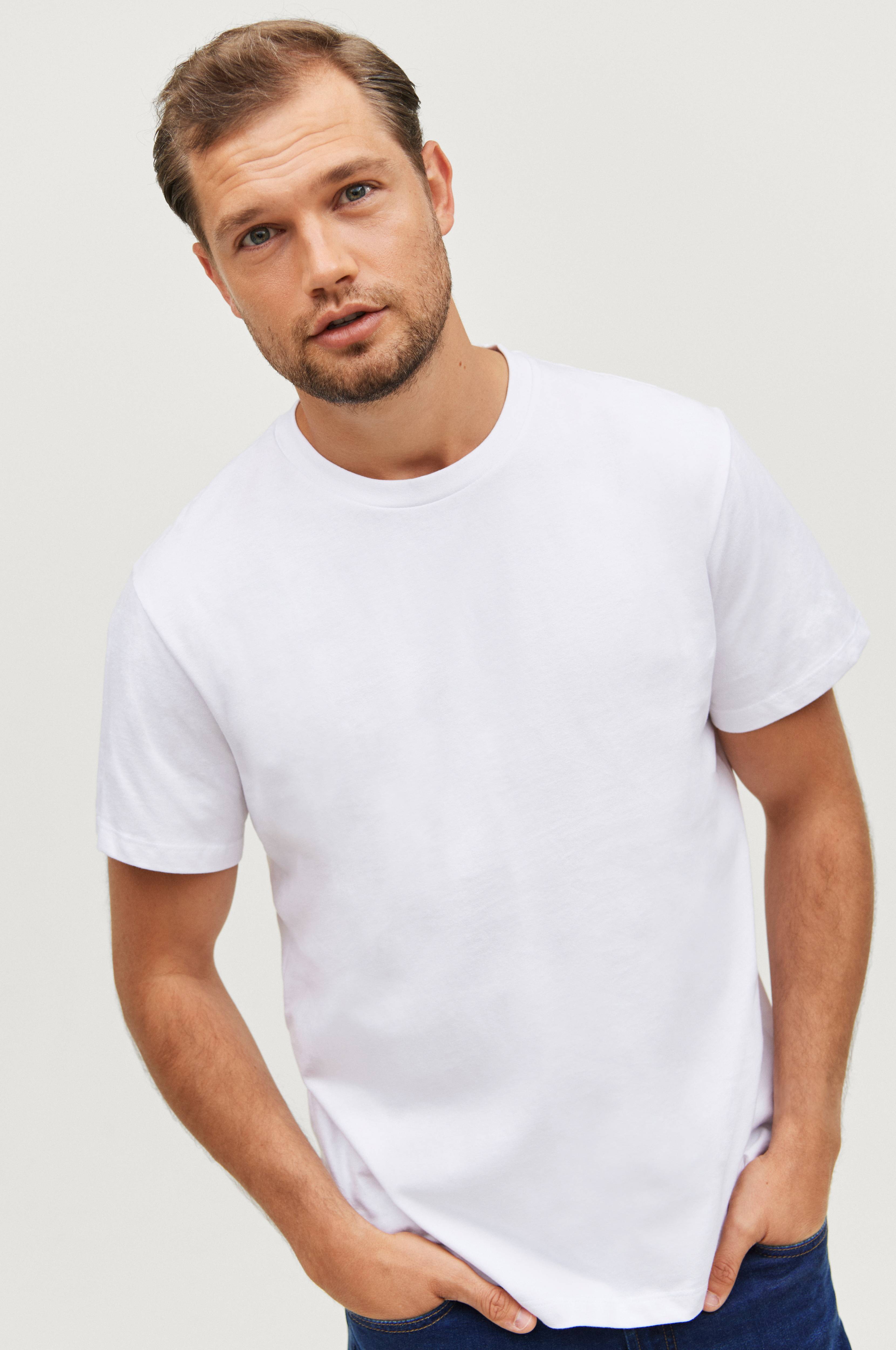 Ensfarvet T-shirt af bomuld i ekstra kraftig jersey (vikt 220 gsm) med rund hals med ribkant.