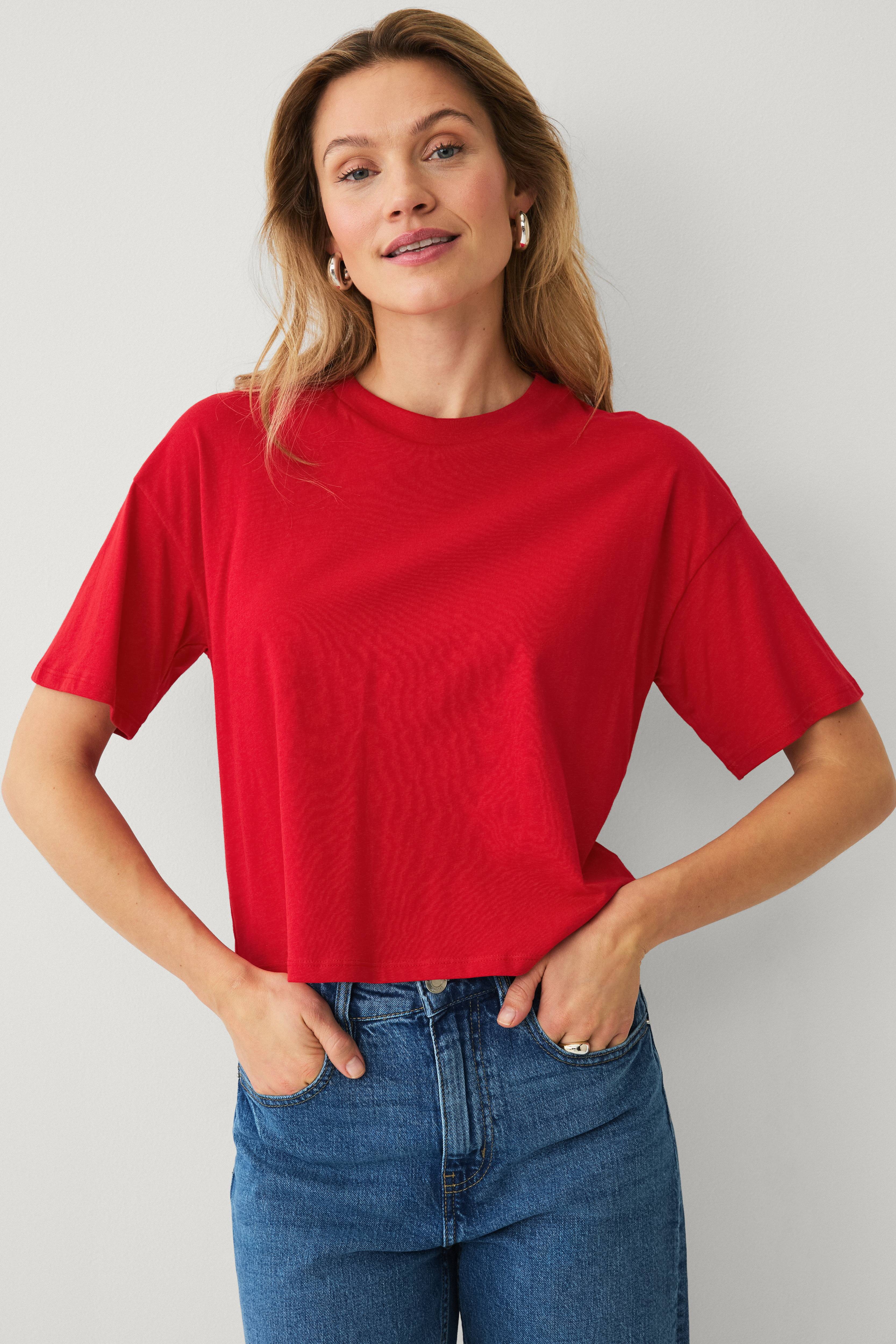 Perfekt T-shirt at have på til alt fra jeans, lærredsbukser og nederdel.