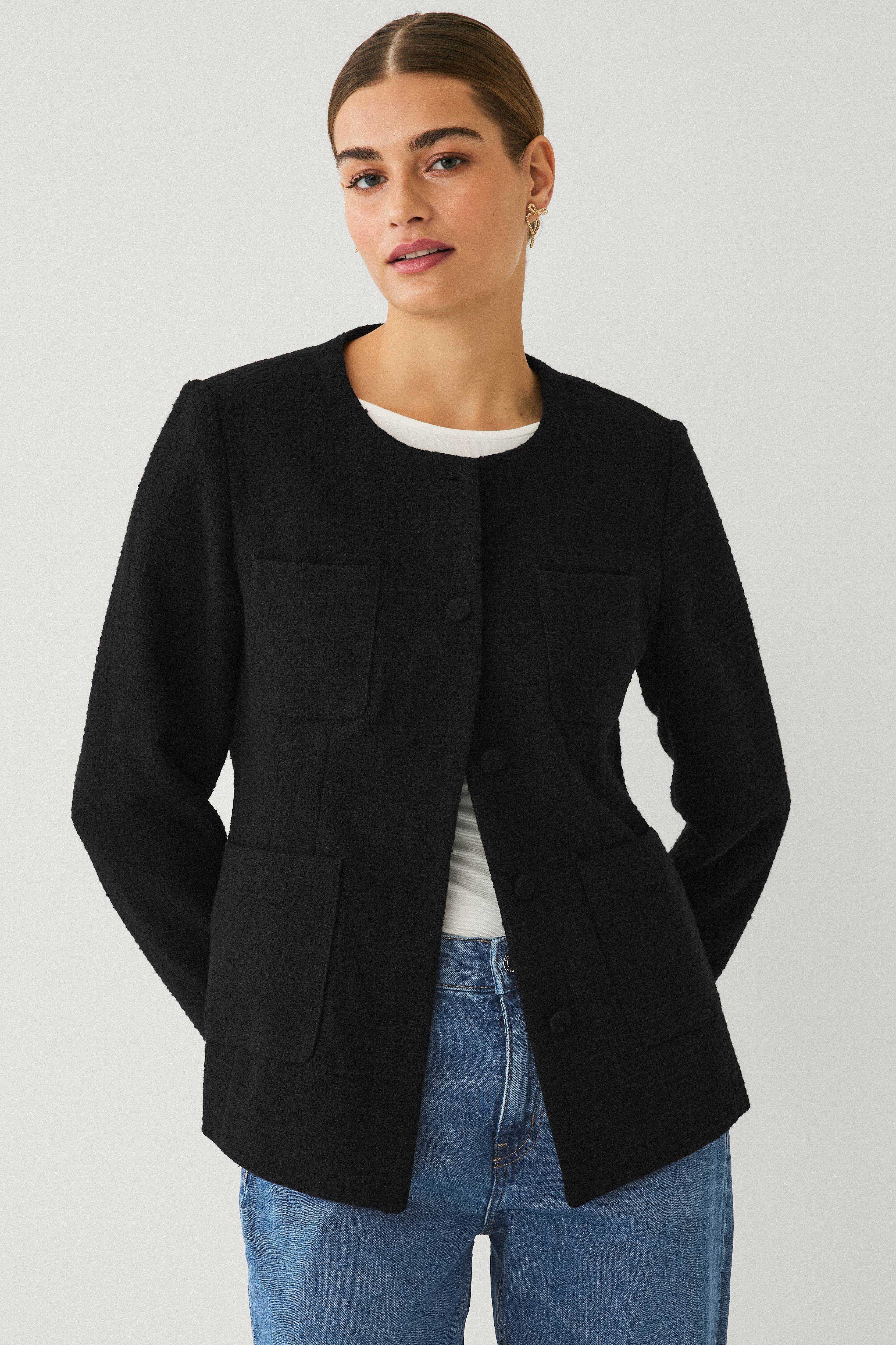 Ellos Collection Tæt på figuren blazer i struktur med påklædte knapper